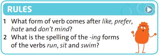 - Teacher checks answers with the class. (With stronger classes, ask students to write two more sentences about things they like and don’t like doing. Students can compare theirsentencesin pairs.Ask some students to tell the class about their partner)