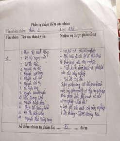 sinh các nhóm tự đánh giá kĩ năng hợp tác nhóm