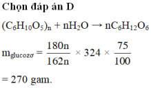 Câu 4: Thủy phân 324 gam tinh bột với hiệu suất của phản ứng là 75%, khối lượng glucozơ thu được là