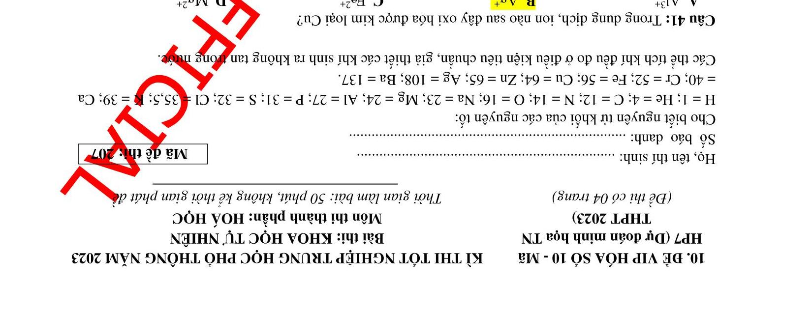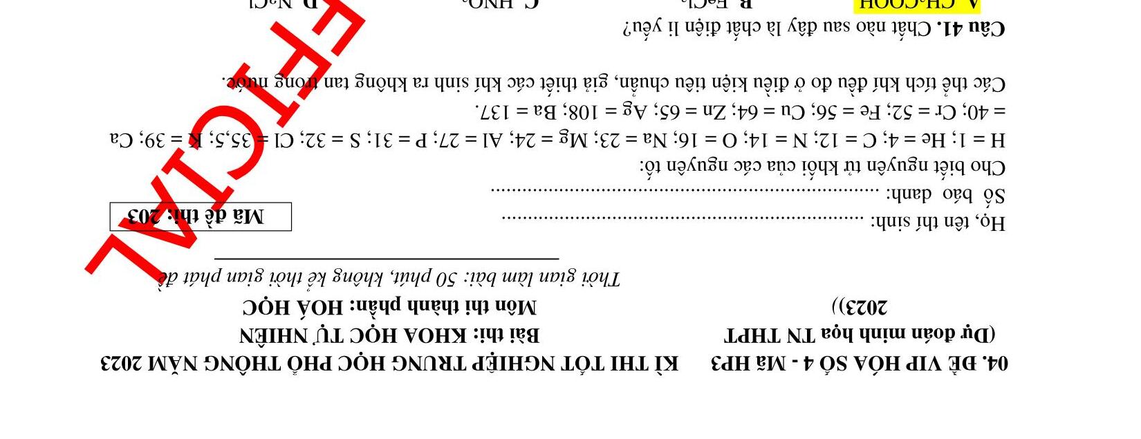 10 ĐỀ DỰ ĐOÁN MINH HỌA KÌ THI TỐT NGHIỆP TRUNG HỌC PHỔ THÔNG NĂM 2023 MÔN HÓA HỌC by Dạy Kèm Quy Nhơn Official - Issuu