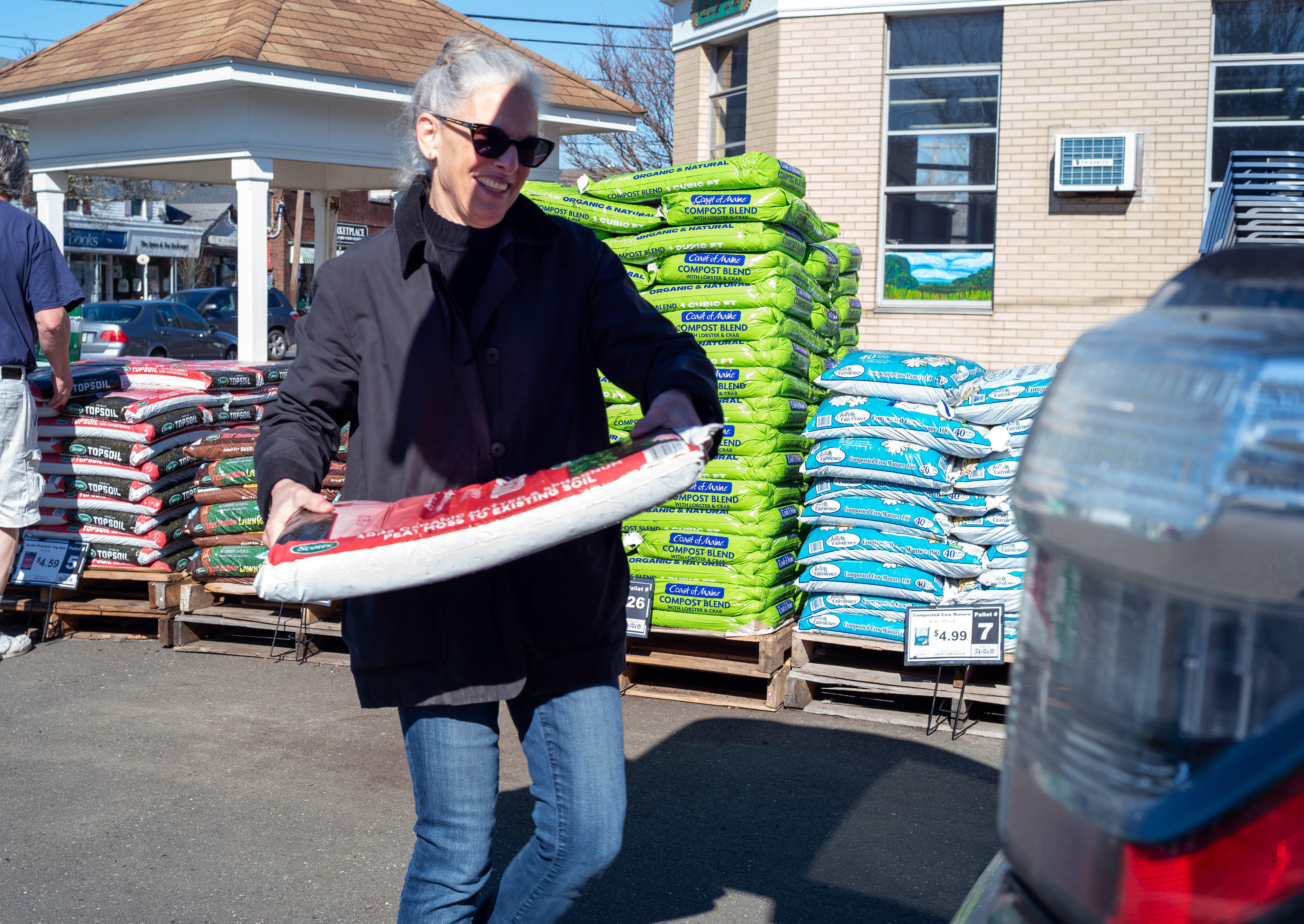 Dganit Zauberman gets an early start on her spring garden while purchasing supplies at Page Hardware in Guilford on March 10. With temperatures climbing into the mid-50s and sunny skies overhead, many residents head outside to tackle early-season yard projects.