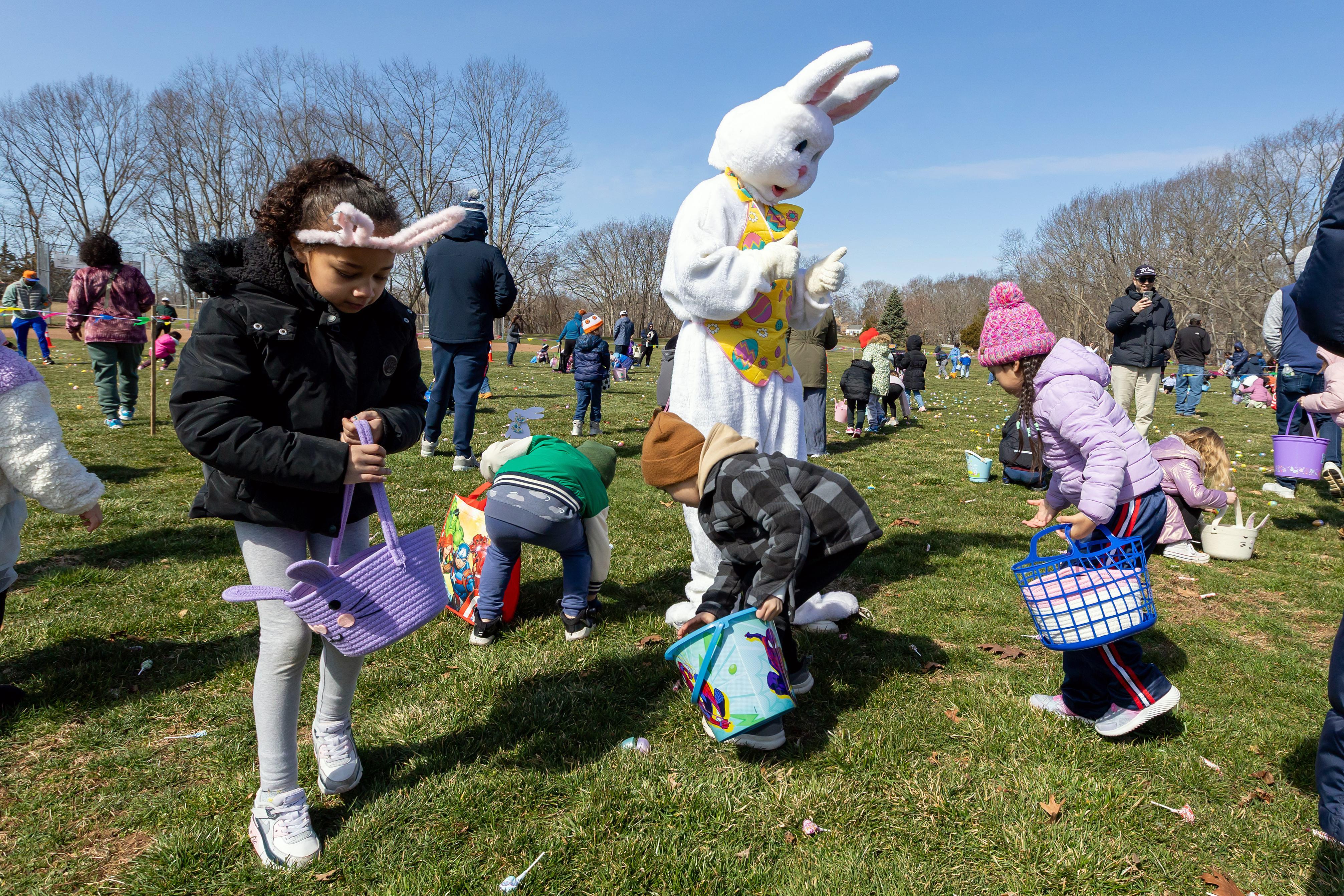 Children scramble across Foote Park during the annual Robert Marston Easter Egg Hunt, sponsored by the Branford Parks and Recreation Department and American Legion Corcoran Sundquist Post #83, on March 28 in Branford. Children ages 10 and under race across the field to collect eggs filled with candy and small prizes.