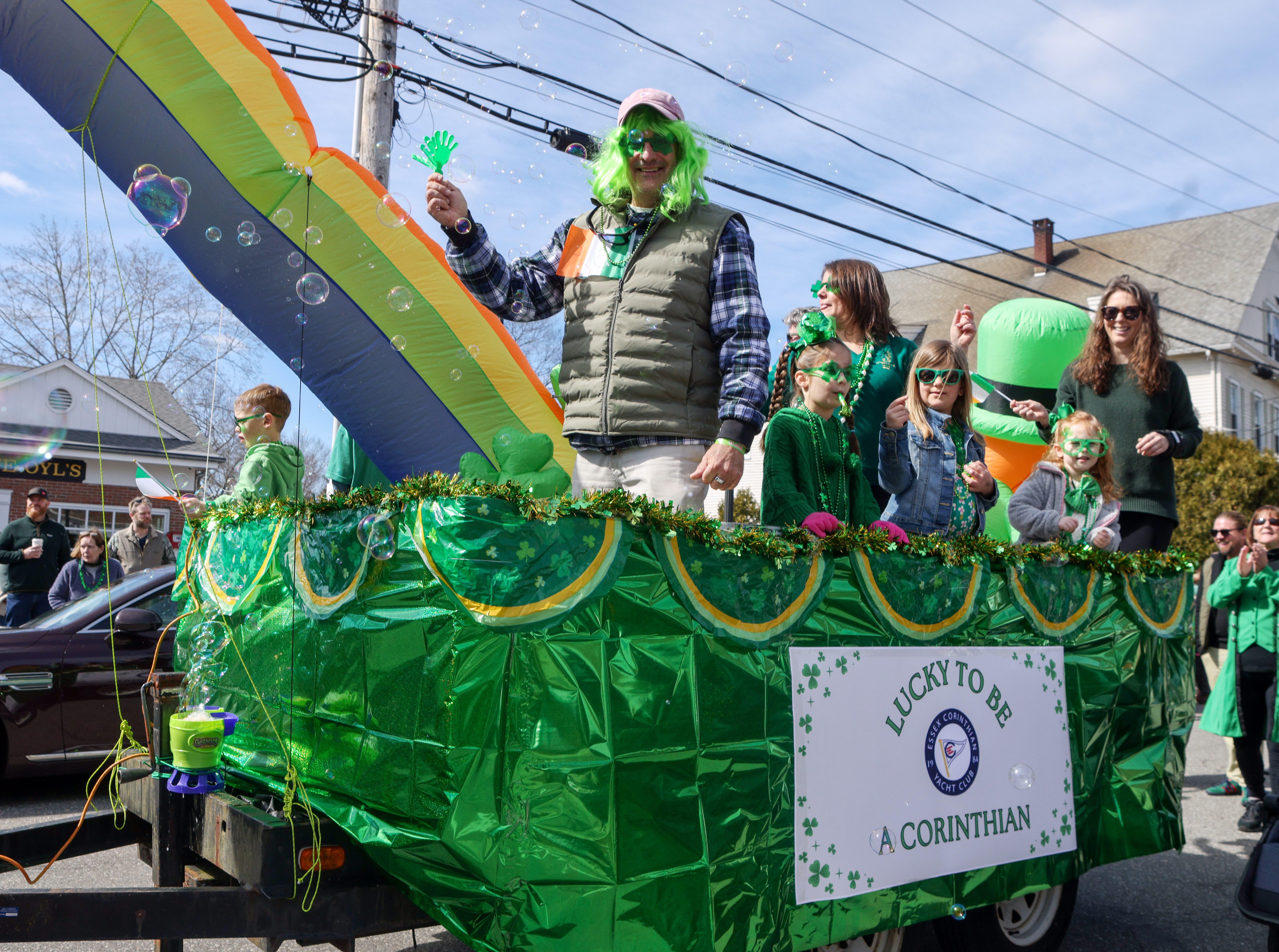 A float from the Essex Corinthian Yacht Club travels down Main Street during the 2026 Essex Go Bragh Parade in Essex Village on March 21. The yacht club joins community groups, including Irish dancers, pipers and drum corps, scouting organizations, sports teams and nonprofits, in the annual procession.