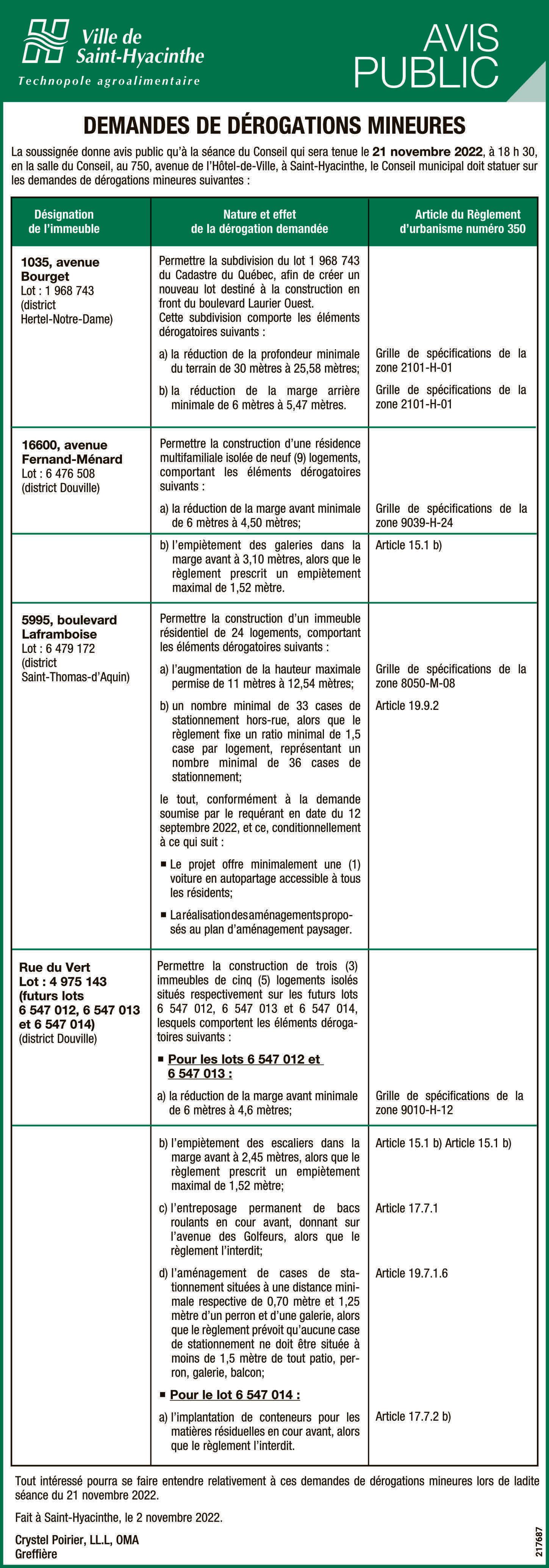 PRÉSIDENT, DIRECTEUR GÉNÉRAL ET ÉDITEUR : Benoit Chartier 655, avenue Sainte-Anne, Saint-Hyacinthe J2S 5G4