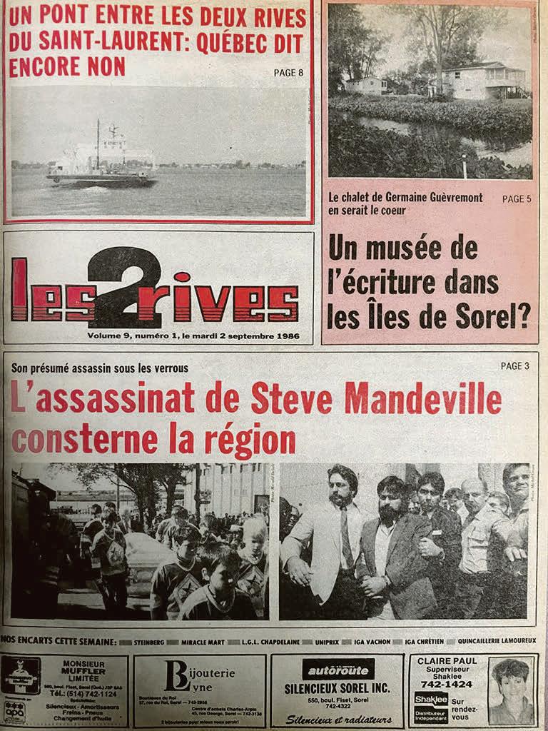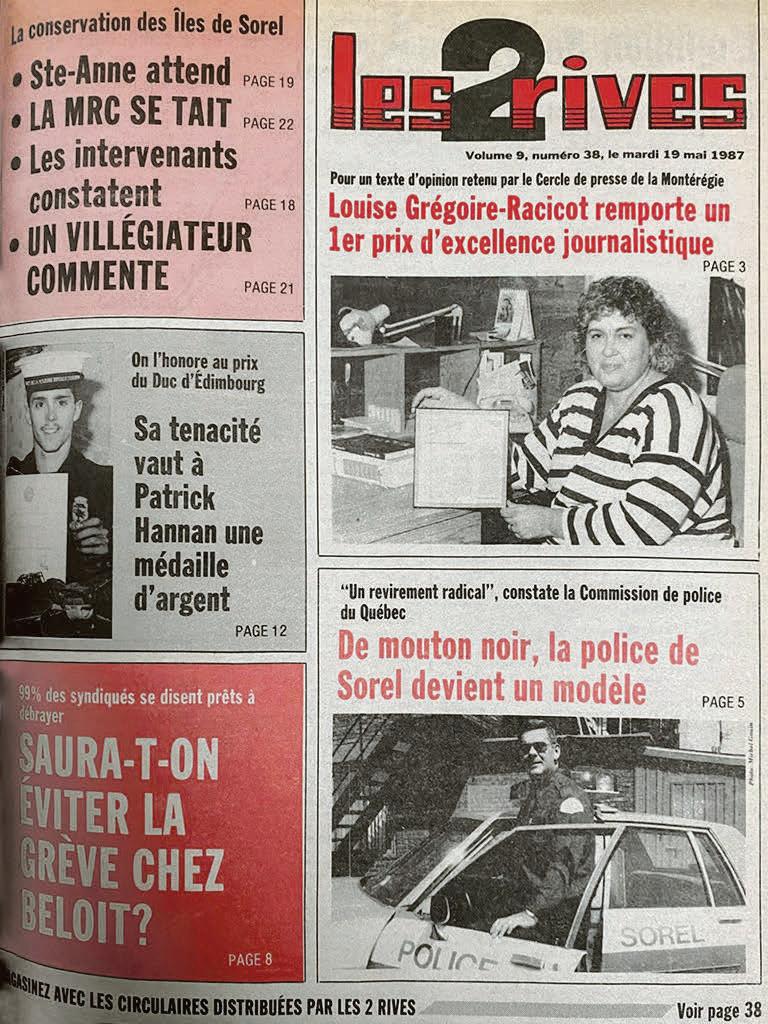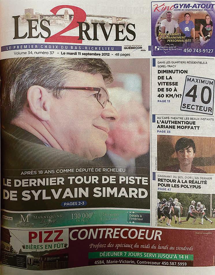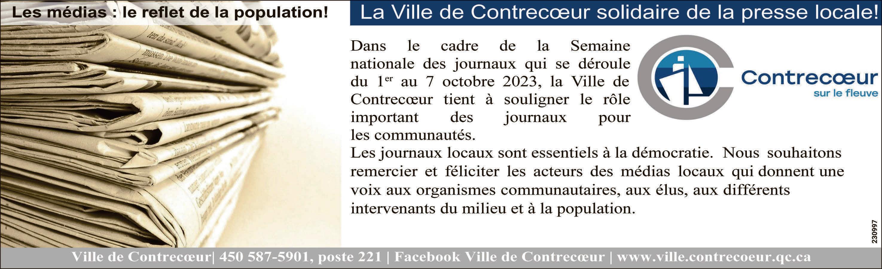 Un hebdo, comme le journal Les 2 Rives, se veut le média le plus important dans la vie des citoyens, d’abord de par sa proximité avec eux. Bien des événements et bien des personnes d’exception passeraient sous le silence dans la communauté, voire même dans la société, sans la présence du journal local.