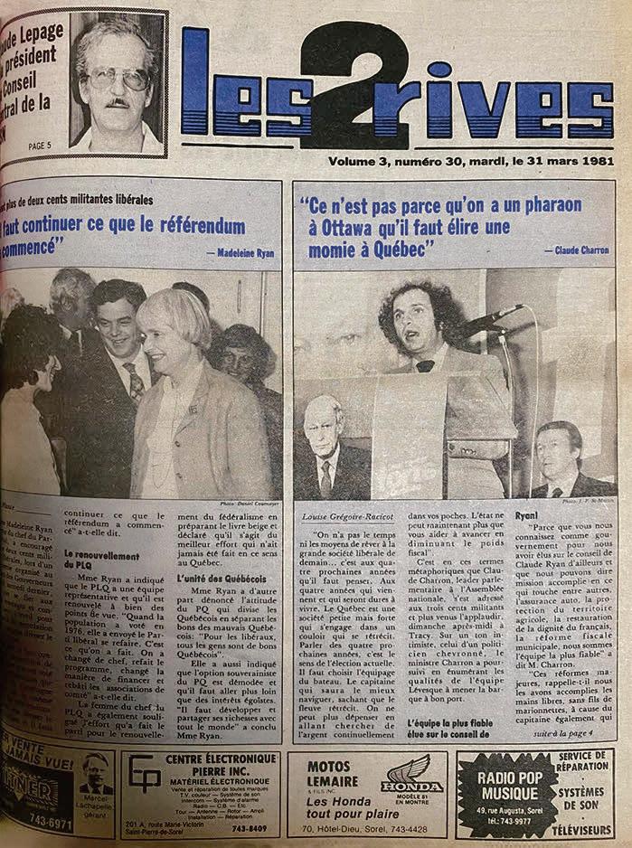 Robert Auger, alors nouveau propriétaire du jeune journal avide de devancer ses compétiteurs dans la vente de publicité notamment, y croyait aussi. Avant même que je ne me joigne à l’équipe, il avait confié à Pierre Plante la rédaction en chef du journal. Journaliste dans l’âme, amoureux de sa région, Pierre avait l’ambition d’en faire plus qu’un circulaire commercial. Un journal lu et apprécié pour son contenu journalistique complet et intellectuellement honnête. On était donc sur la même longueur d’ondes pour traiter des réalités, réalisations, gran-