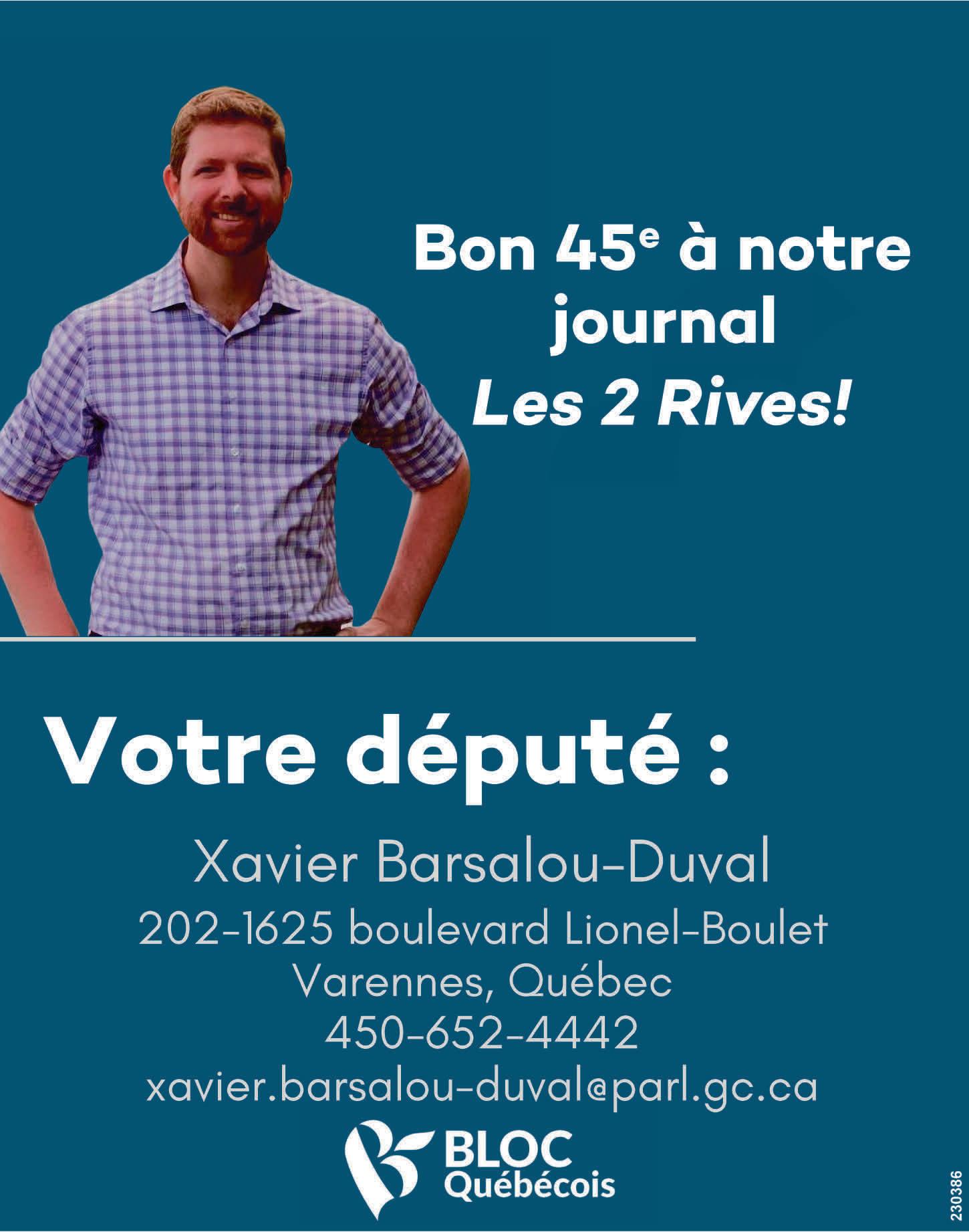Le député de Richelieu, Jean-Bernard Émond, a souligné le 45e anniversaire du journal Les 2 Rives dans une déclaration prononcée au Salon bleu de l’Assemblée nationale du Québec, le 28 septembre.