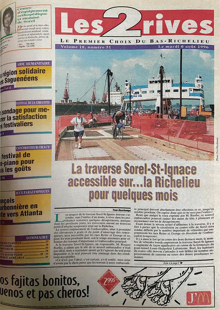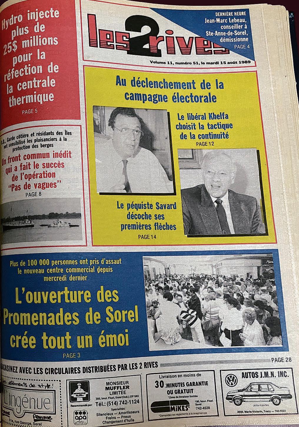 Il rappelle que la région de Sorel-Tracy a connu une dizaine de journaux différents, notamment Le Courrier de Sorel, Le Riviera, Le Sorelois, La Voix et bien évidemment Les 2 Rives. « Fin XIXe siècle et début XXe siècle,