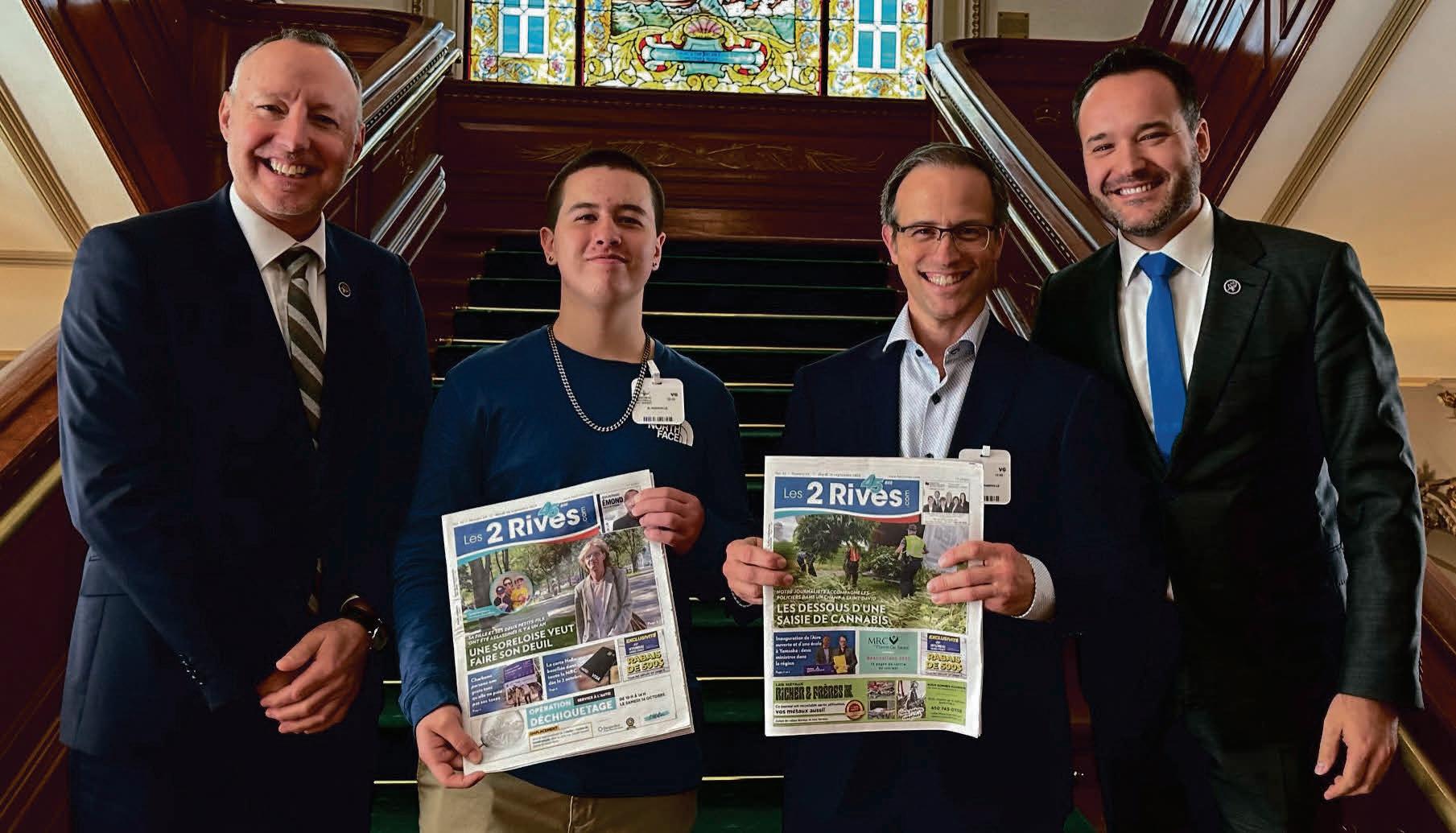 la présence de Marcel Rainville, directeur général du journal Les 2 Rives. « Je tiens à saluer le dévouement de vos équipes et de toutes les personnes impliquées dans la production du journal et qui assure la pérennité de votre média. […] En cette période trouble pour l’avenir de nos médias locaux, j’exprime ma gratitude envers Les 2 Rives pour son engagement envers la vérité, l’intégrité et la transparence. Que cette célébration du 45e anniversaire soit le prélude à de nombreuses années d’informations de qualité. »