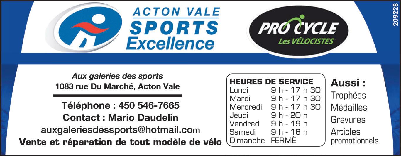 Aux Galeries des Sports, 1083, rue du Marché, Acton Vale .. 450 546-7665
