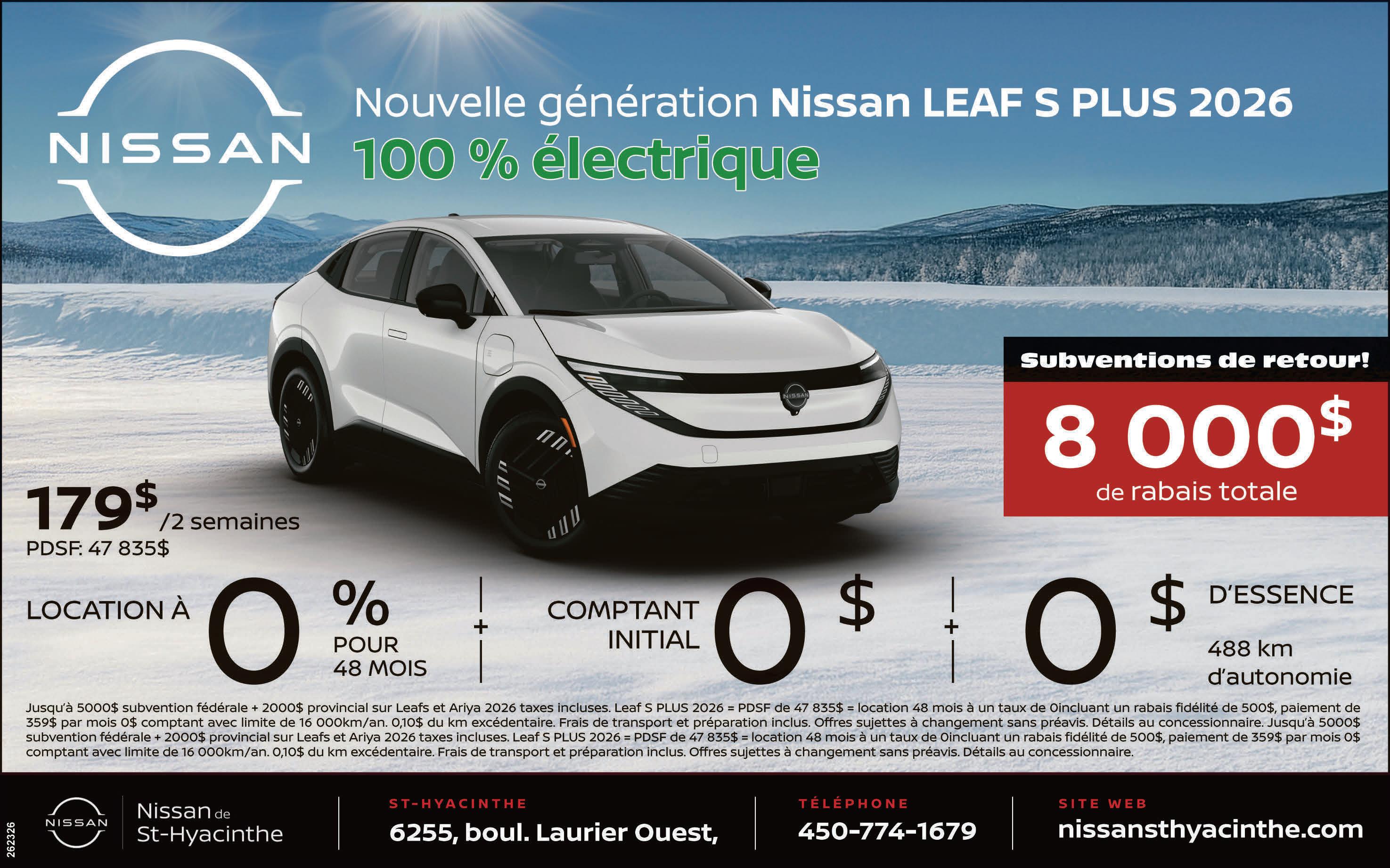 La Nissan Leaf n’a plus rien à prouver. Pionnière de l’électrification moderne, elle a été l’une des premières voitures électriques accessibles au grand public. Pour 2026, elle revient avec une approche mieux adaptée aux attentes actuelles des automobilistes québécois, tout en conservant ce qui a fait son succès : la simplicité et l’efficacité.