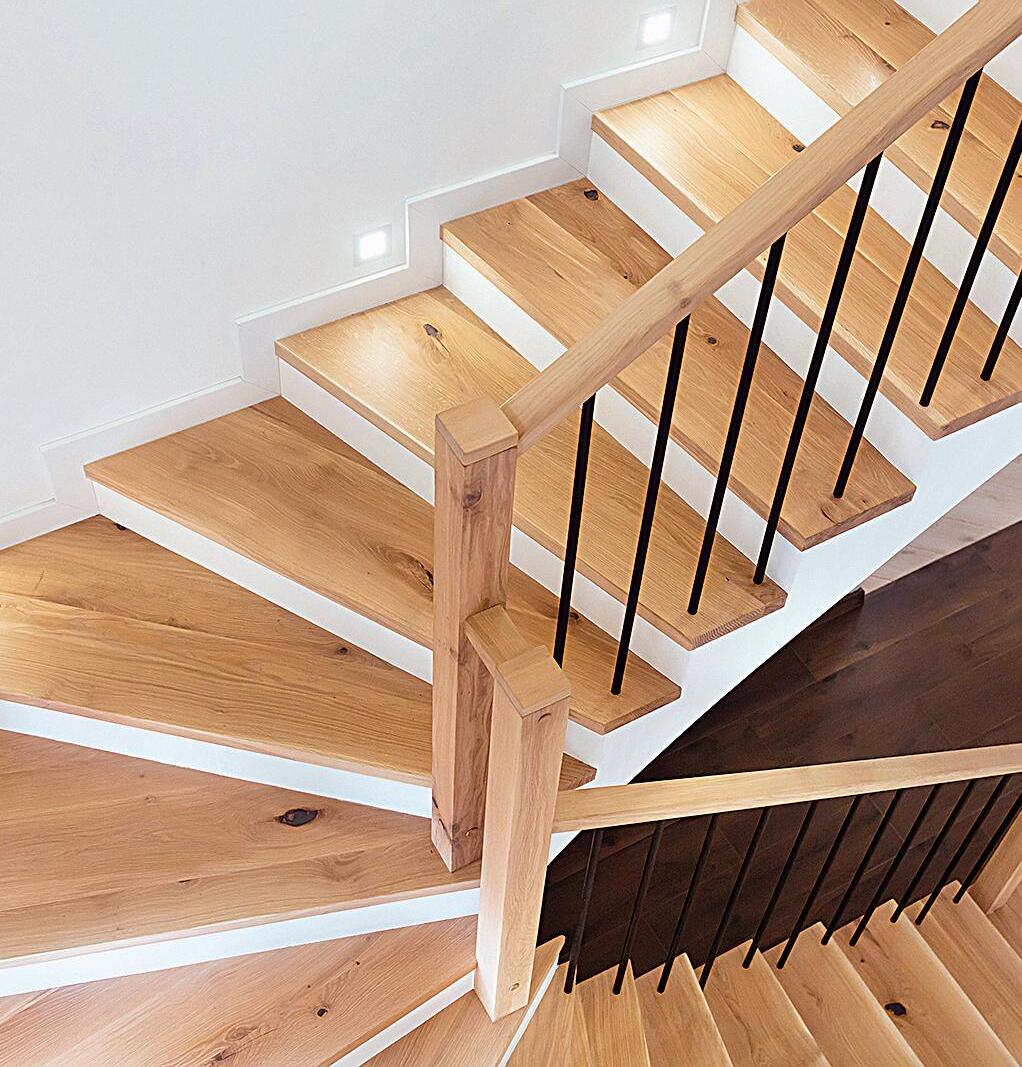 • Décor monochrome : ajoutez de la profondeur à l’espace en utilisant la même couleur (ou plusieurs nuances de celleci) pour les murs et l’ensemble de l’escalier. Effet saisissant garanti!