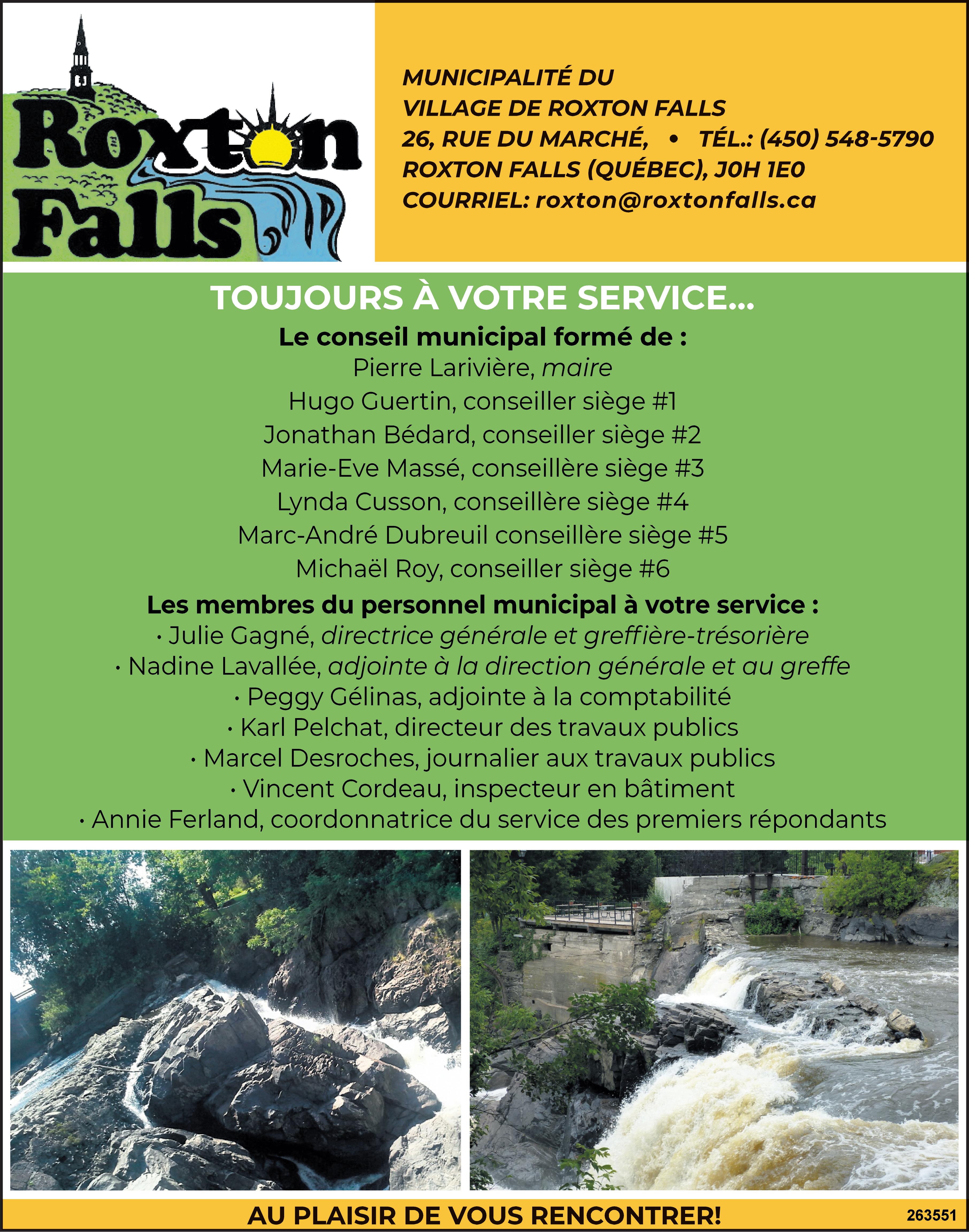 Fraîchement élu en novembre dernier, le maire de Roxton Falls, Pierre Larivière, n’a pas eu le temps de chômer depuis, car plusieurs projets sont en cours dans la municipalité de quelque 1350 habitants. « Je suis très chanceux, car nous avons une excellente équipe à la Municipalité. Nos conseillers ont plusieurs compétences complémentaires qui m’aident énormément dans mon rôle. Moi, en fait, mon rôle est de lier le tout et de présenter avec le plus de transparence possible les décisions et les projets de Roxton Falls à nos citoyens. Pour moi, la transparence est primordiale. C’est pourquoi nous avons décidé de réduire au minimum les caucus et d’inviter le plus possible les Roxtonnois à assister à nos assemblées de conseil et à nos décisions », a indiqué en entrevue le maire de Roxton Falls, Pierre Larivière.