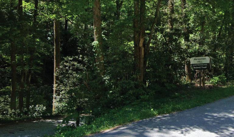 The Bartram Trail continues southeast approximately 3.75 miles from Courthouse Gap to a trailhead at Warwoman Dell Recreation Area. The planned Scotts Creek Greenway follows Stekoa and Scotts Creeks west to the proposed City Hall Park in Clayton.