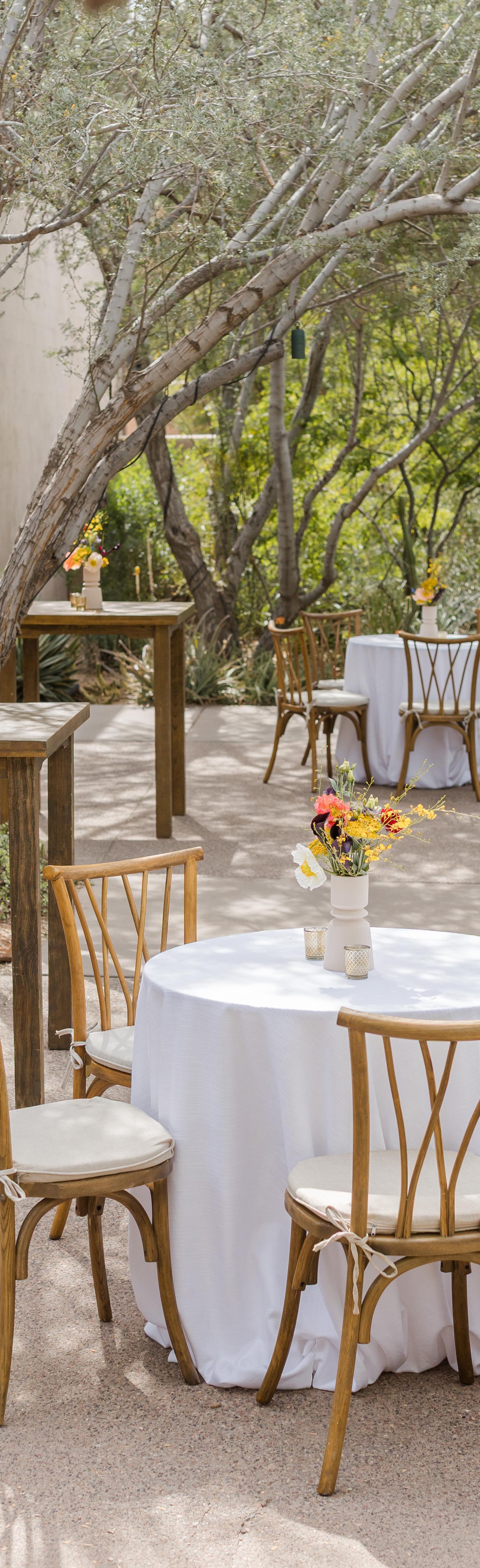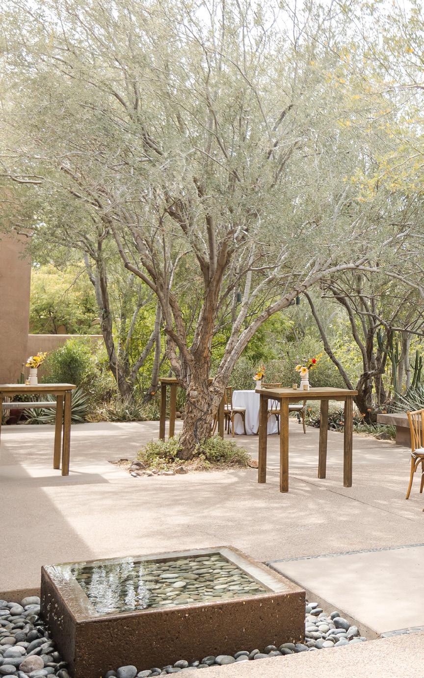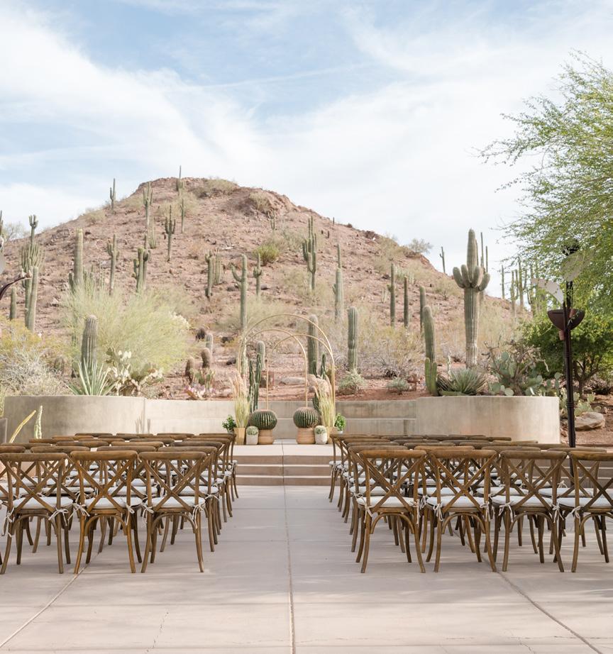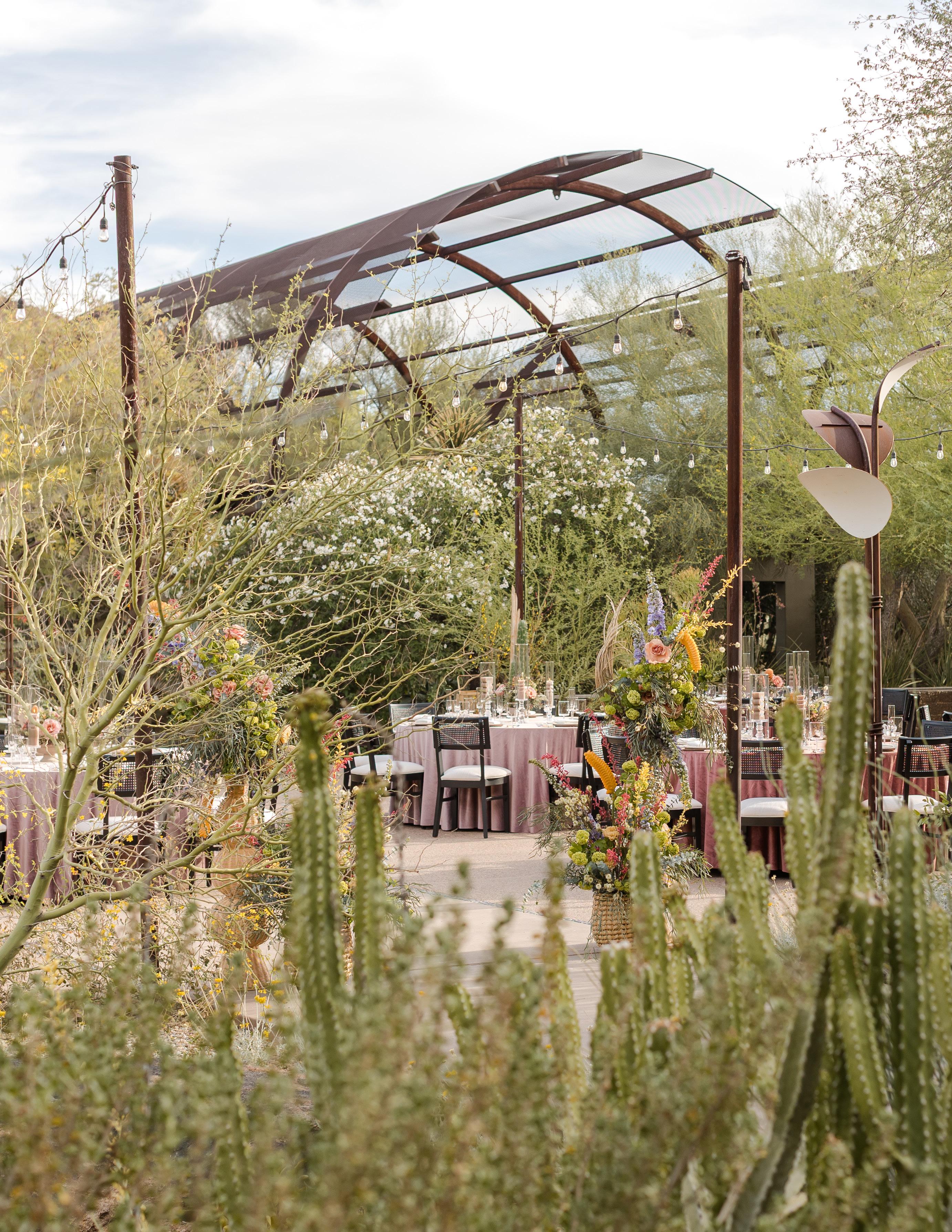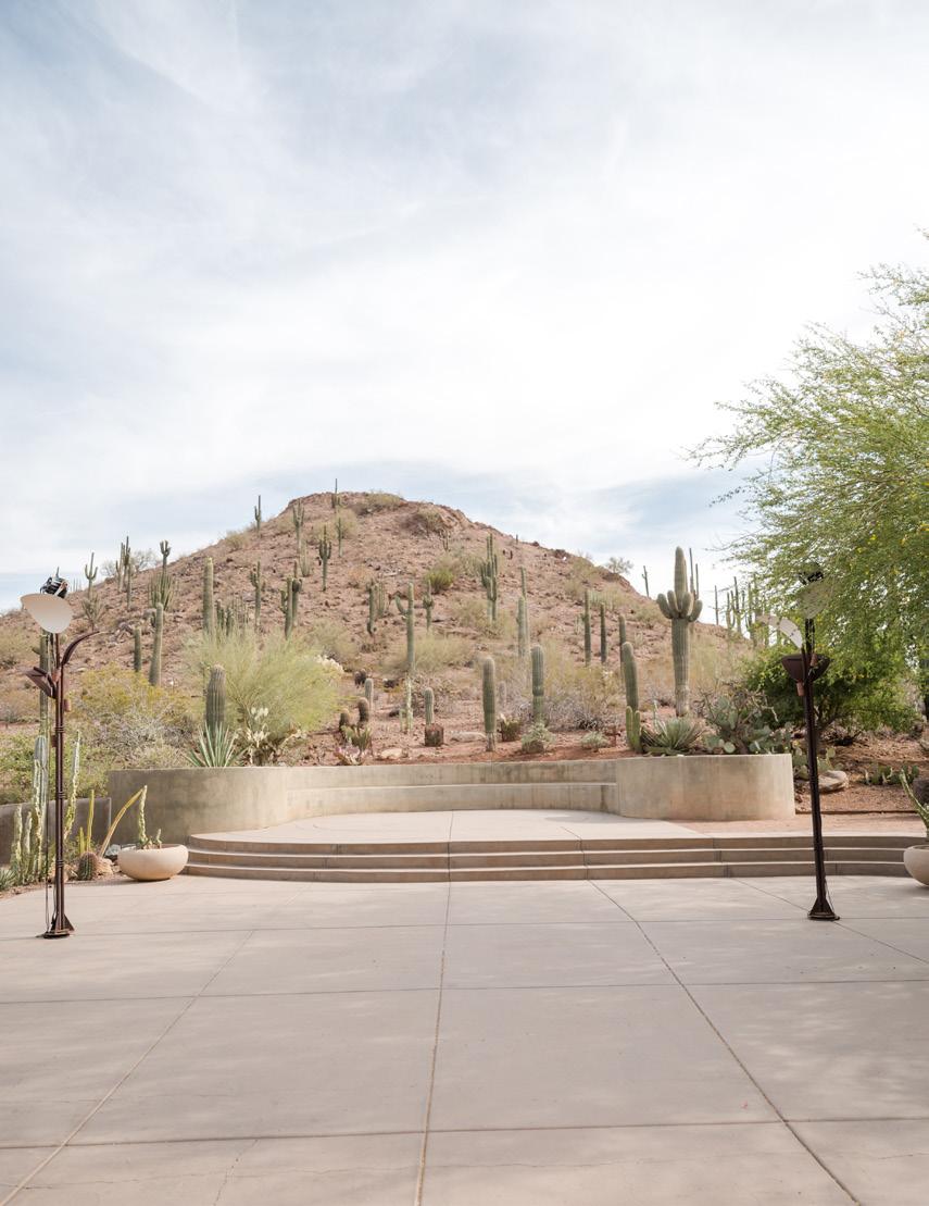 This lush location is nestled amid the Garden’s desert landscaping and features vibrant colors of the Arizona sunset. The refreshing scents of sage and lavender create a place for people to relax and take in the tranquility of the Garden while celebrating your outdoor wedding, cocktail hour or dinner reception.