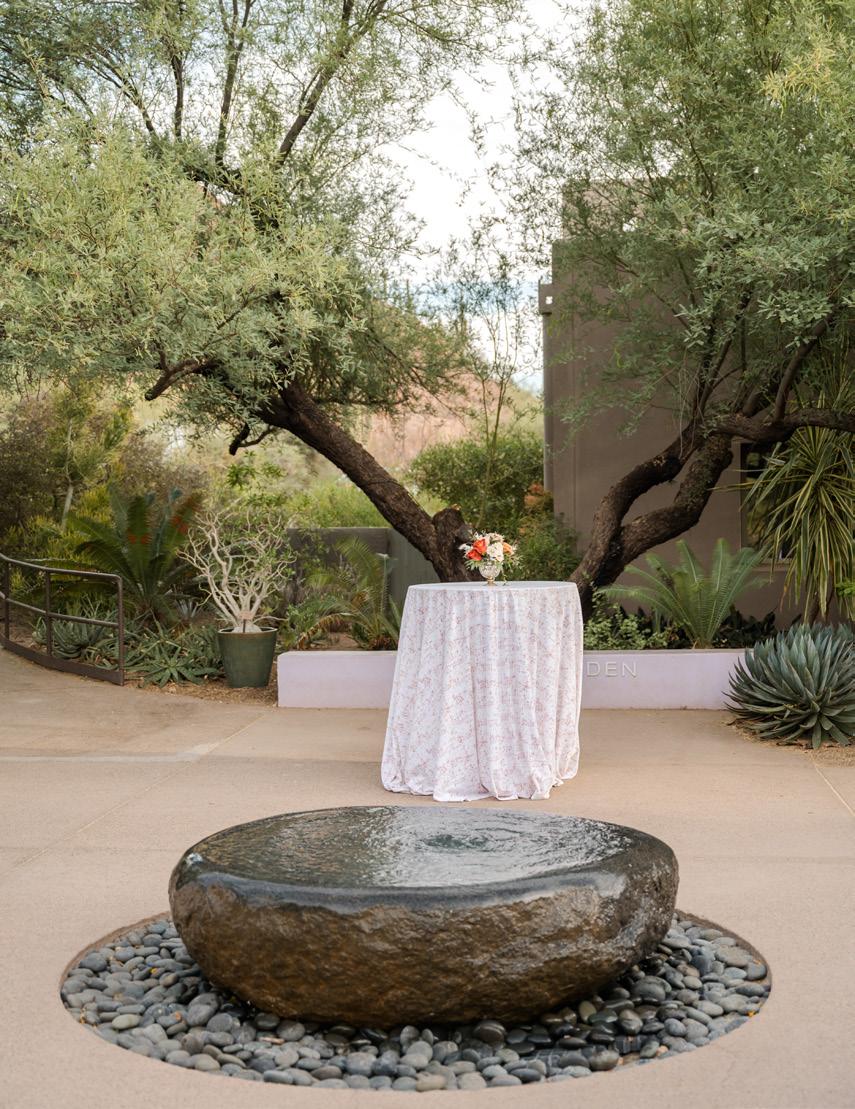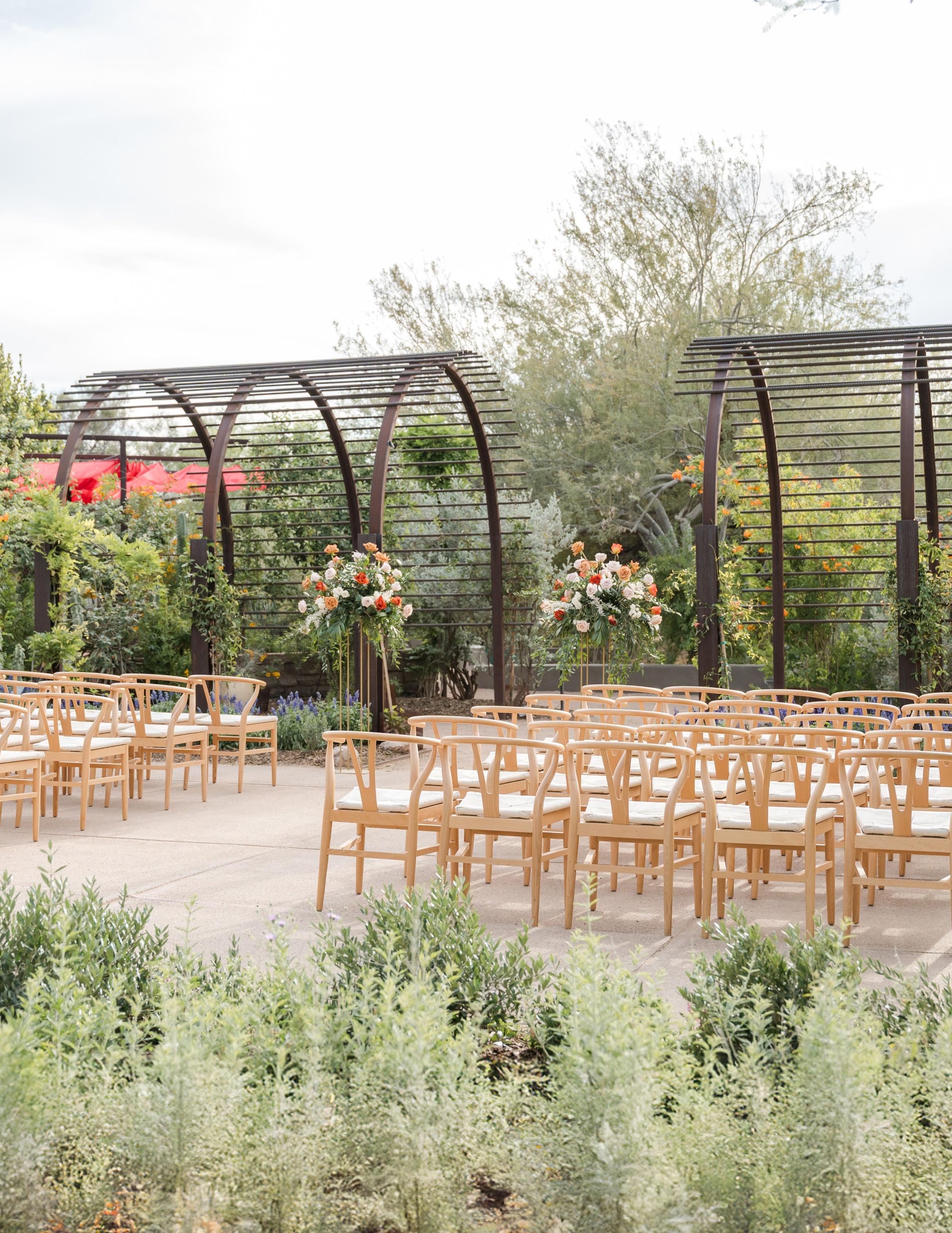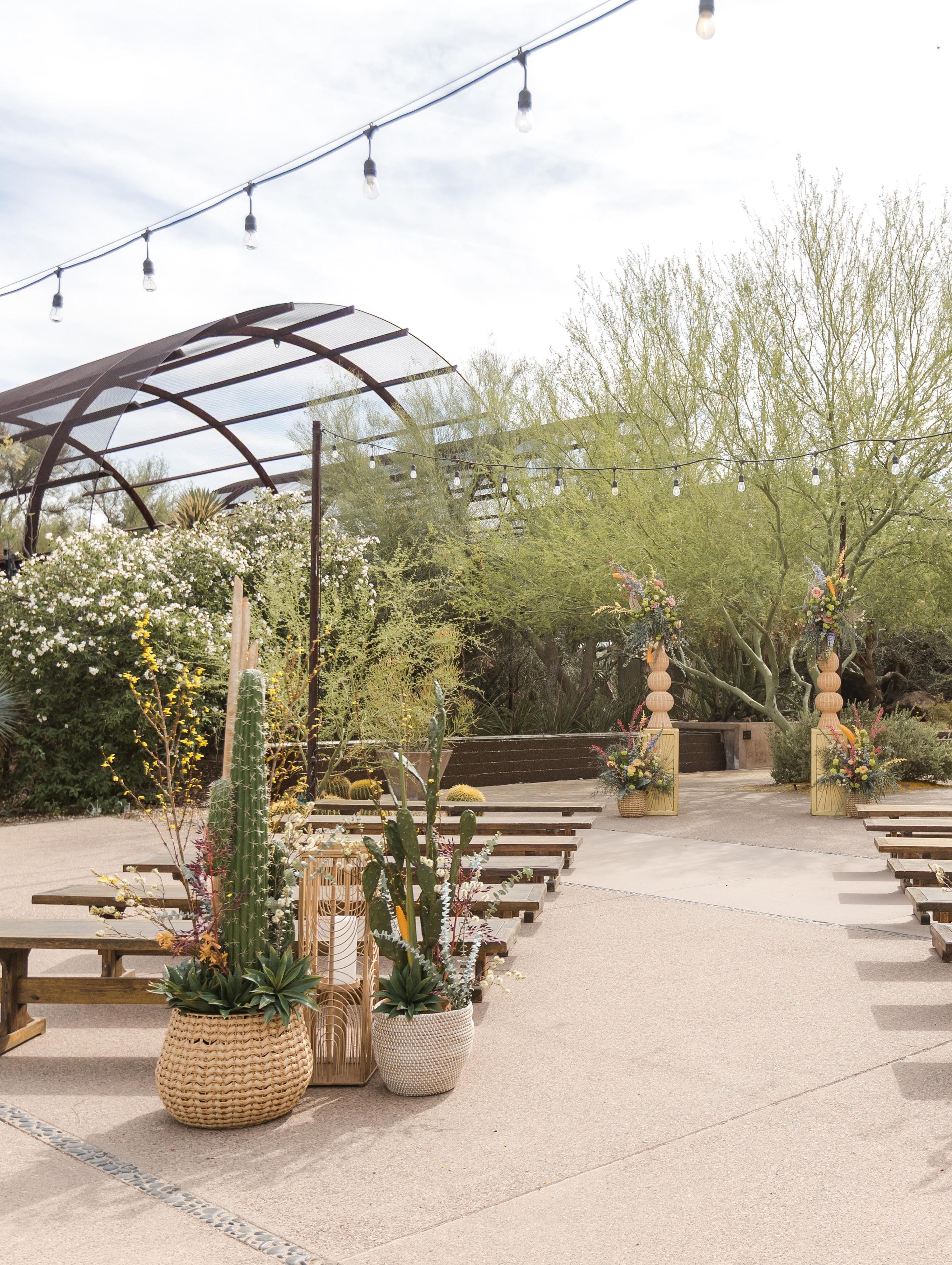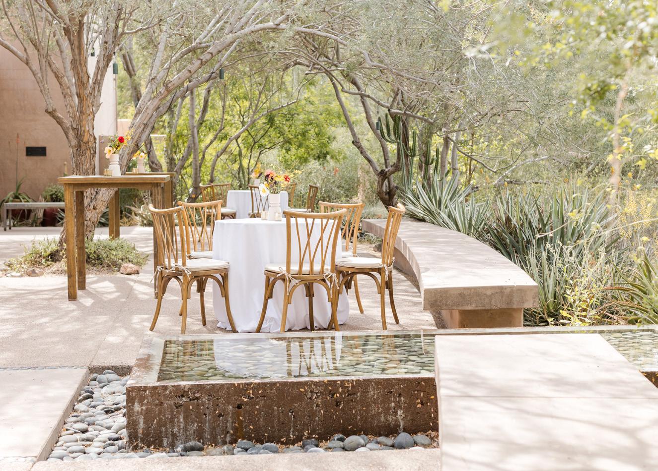 This lush location is nestled amid the Garden’s desert landscaping and features vibrant colors of the Arizona sunset. The refreshing scents of sage and lavender create a place for people to relax and take in the tranquility of the Garden while celebrating your outdoor wedding, cocktail hour or dinner reception.