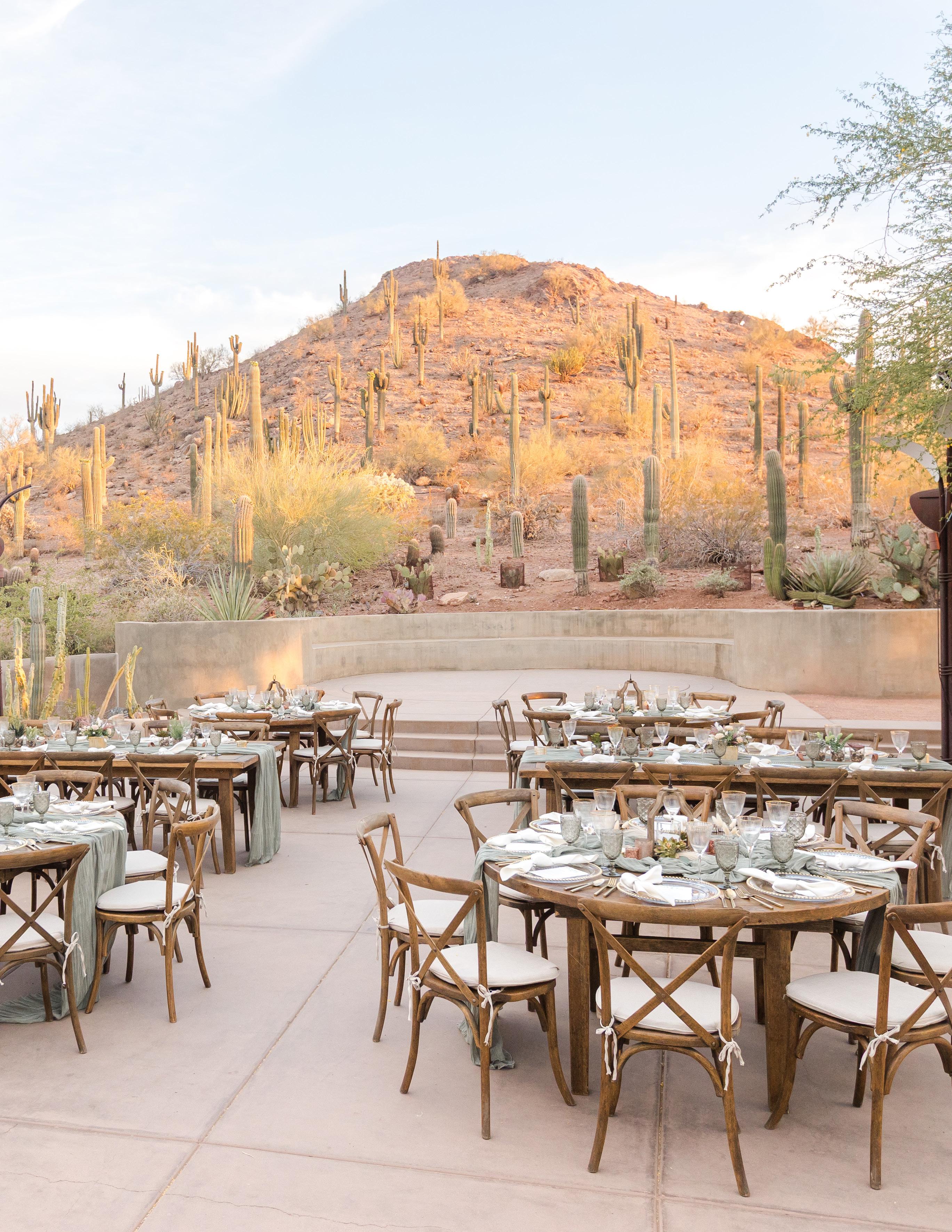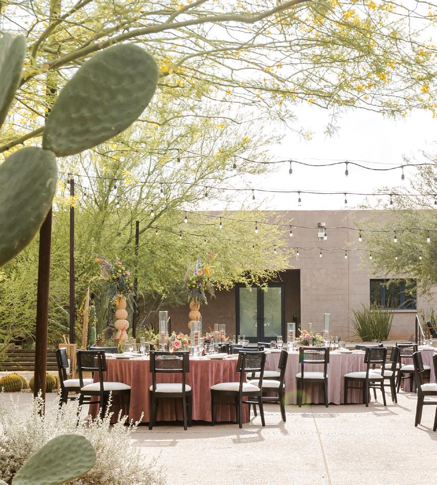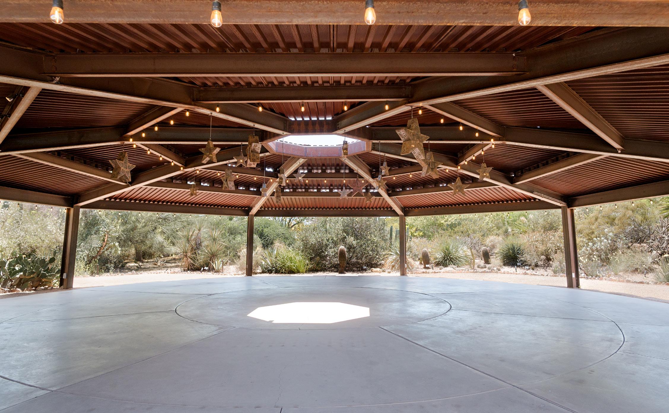 Located off the Harriet K. Maxwell Desert Wildflower Trail, this circular open-air pavilion is surrounded by desert plants and scenic views of Papago Buttes and Camelback Mountain. This location is enveloped in natural desert beauty, creating an intimate space with illuminated rustic stars for ceremonies, cocktail hours, dinner receptions and memorial services. Dine under blue skies or starry nights, which are visible through the pavilion’s center skylight.