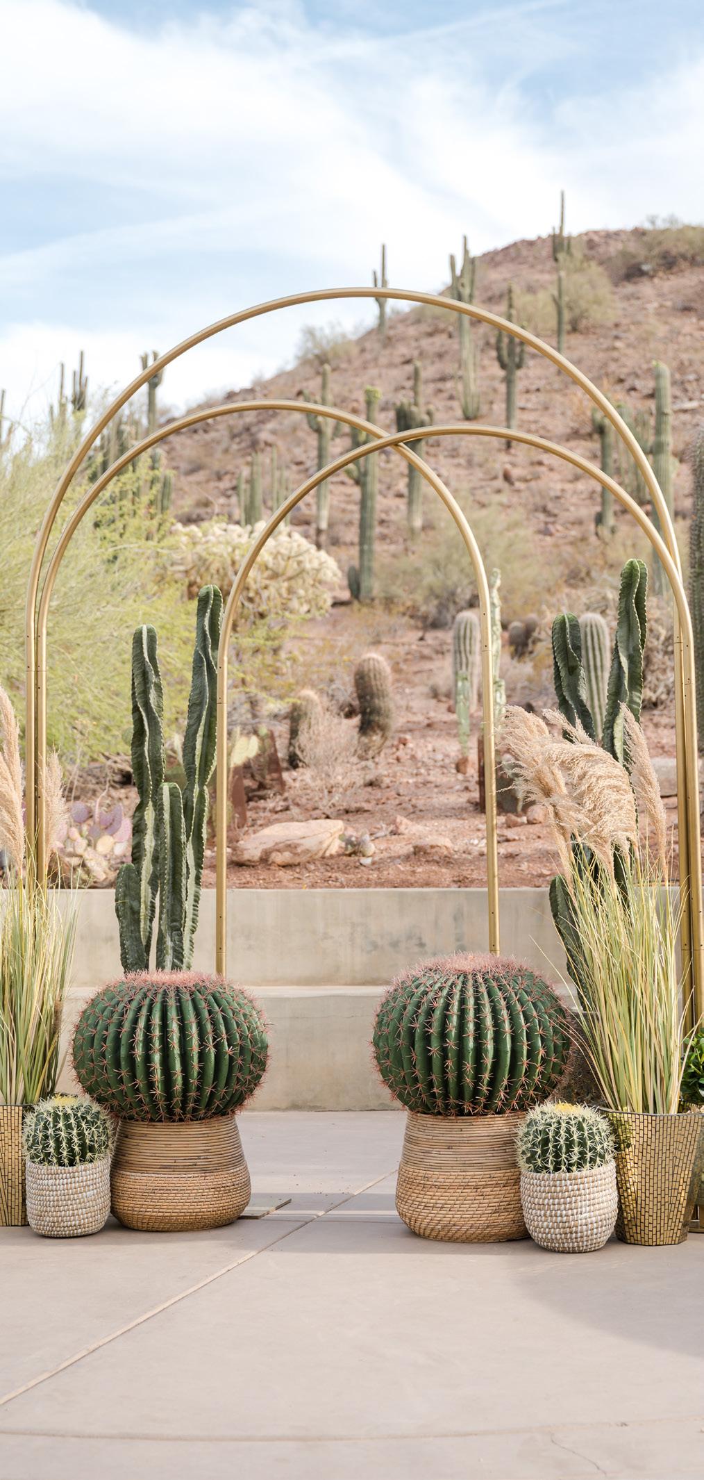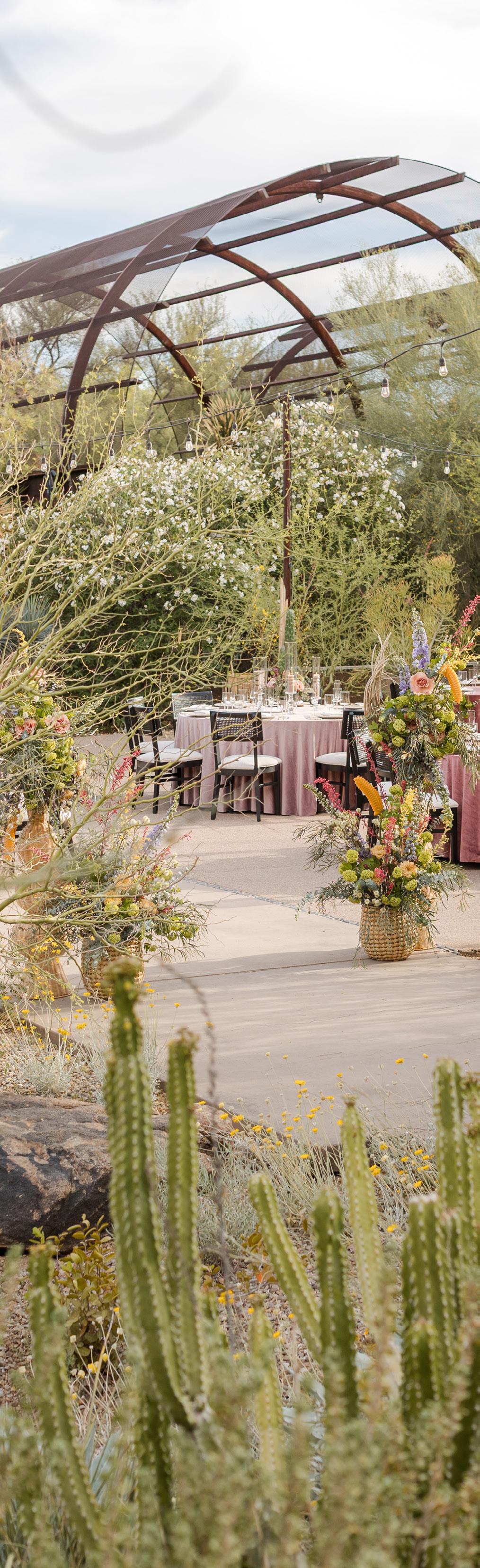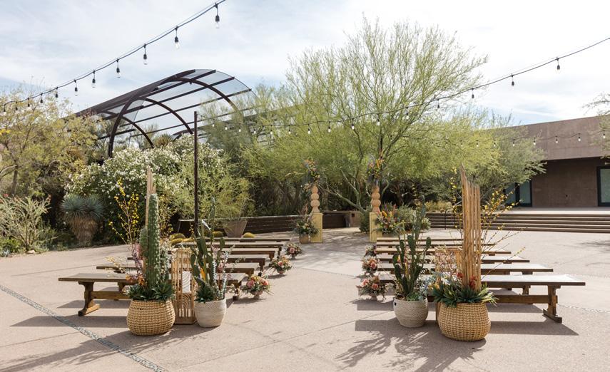 they must stay on a leash or in a kennel at all times. The pet must immediately leave the Garden at the conclusion of your ceremony. There are no exceptions to this policy.Because of the Garden’s collection and wildlife, confetti, bird seed, sparklers, wishing lanterns and rice are prohibited. Bubbles, flower petals and glow sticks are acceptable. Cut flowers are acceptable; live potted plants must be purchased through the Garden Shop (480.526.8891) or through a licensed nursery. Please see Preferred Vendor List for contacts. Live potted plants cannot be placed on or near existing Garden beds. All plants and flowers must be delivered the day of the event and removed from the Garden after the event. All flower petals must be swept up and disposed of after the event.