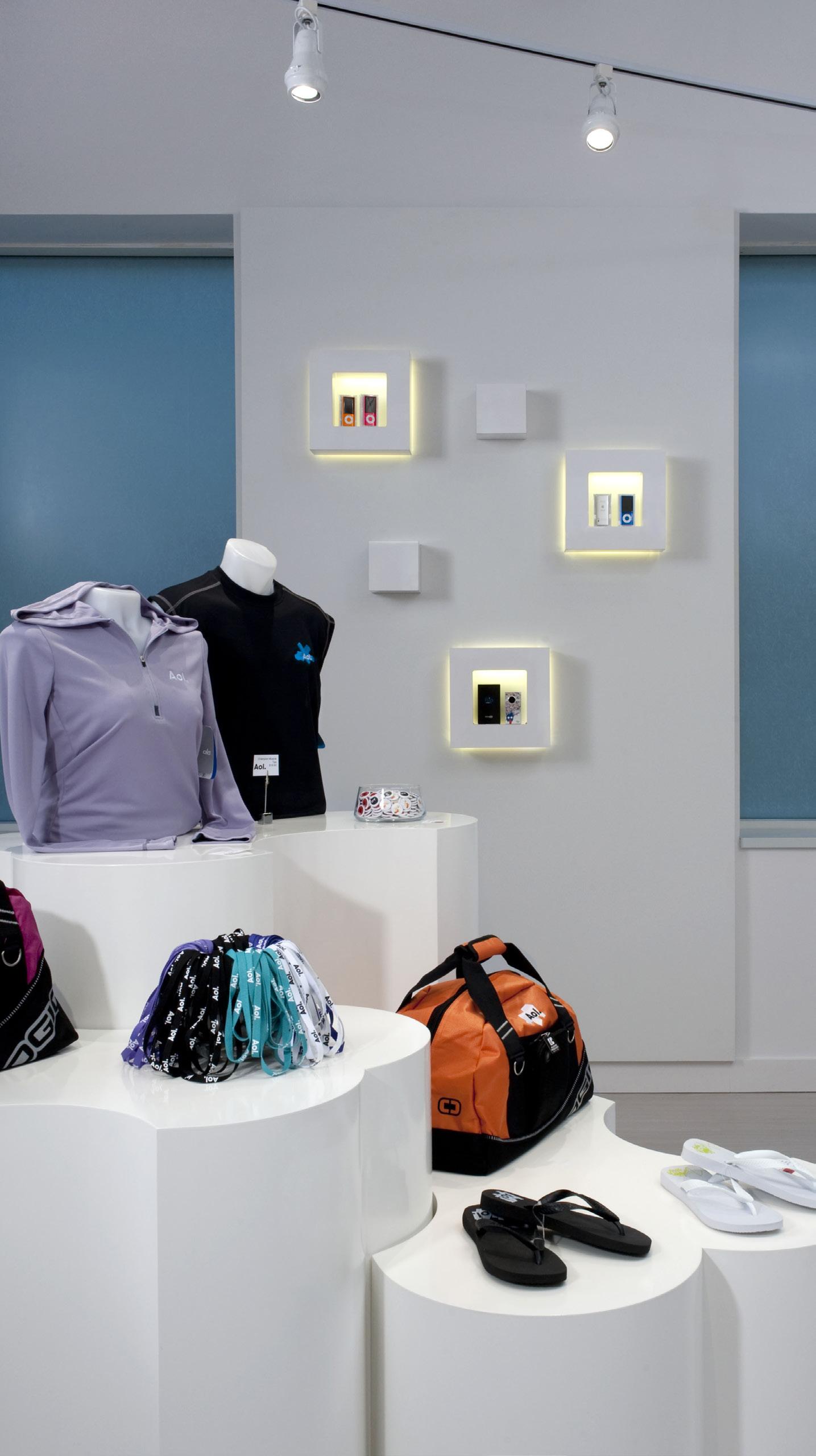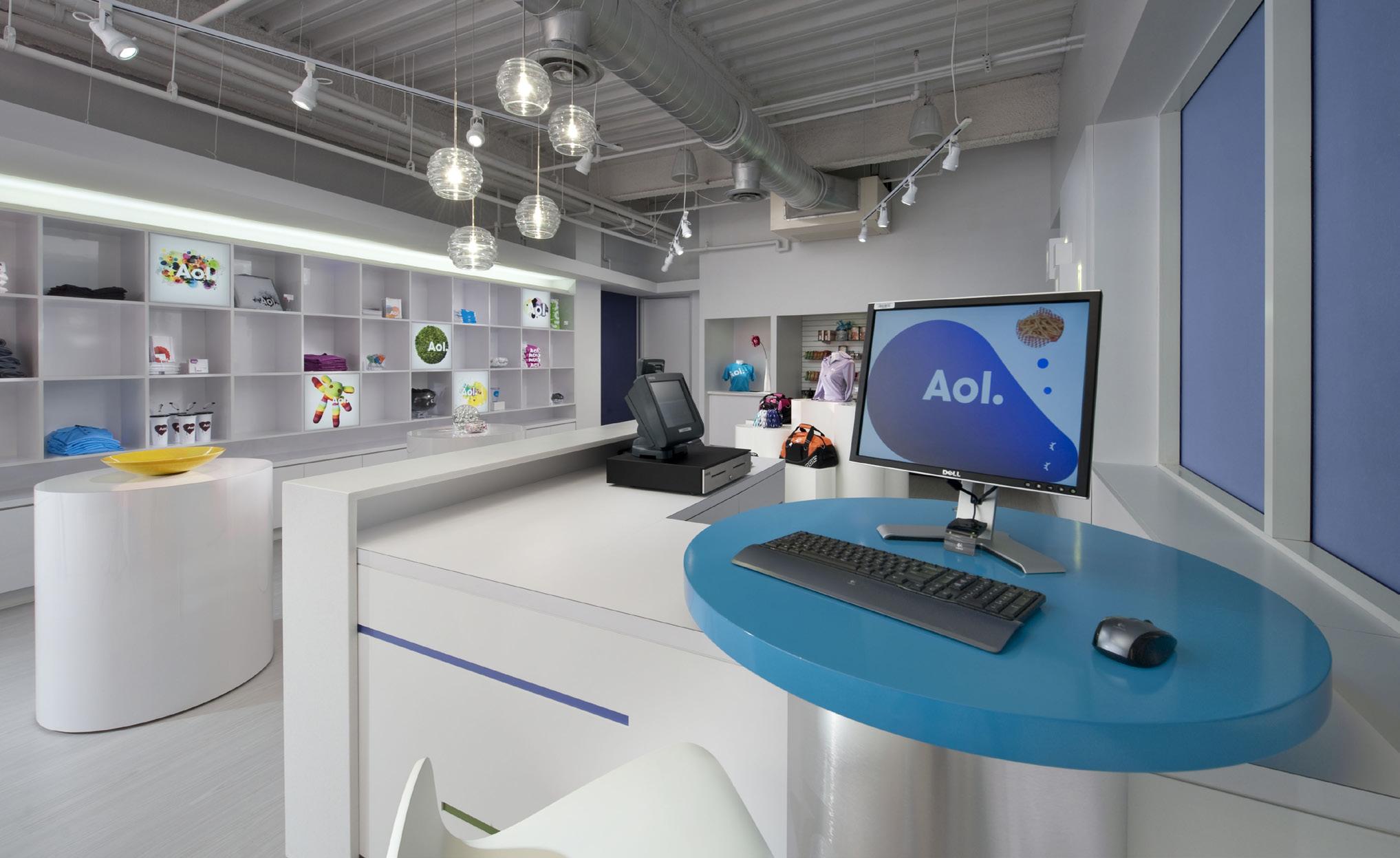Four weeks before AOL’s 25th Anniversary Party, DBI was hired to redesign the AOL Company Store. The goal was to transform the small store, which sold snacks and greeting cards, into a boutique displaying AOL’s branded merchandise for its employees. To reflect AOL’s campaign to refresh its brand and image, the redesigned store features a cutting-edge, contemporary look and style.