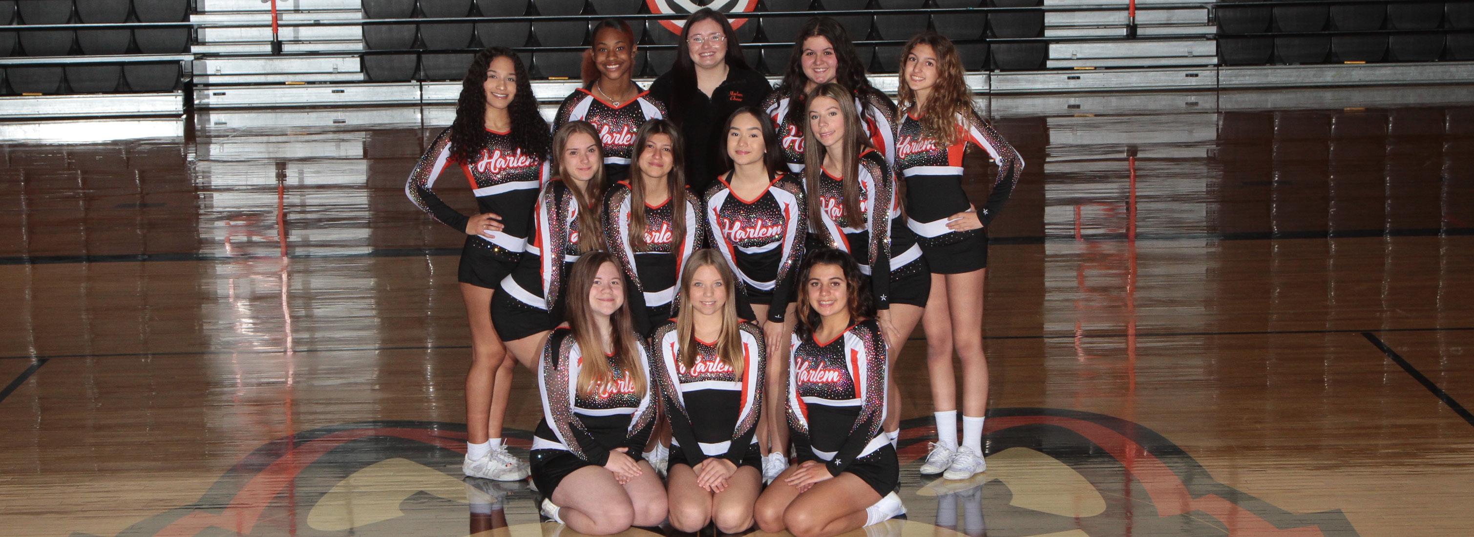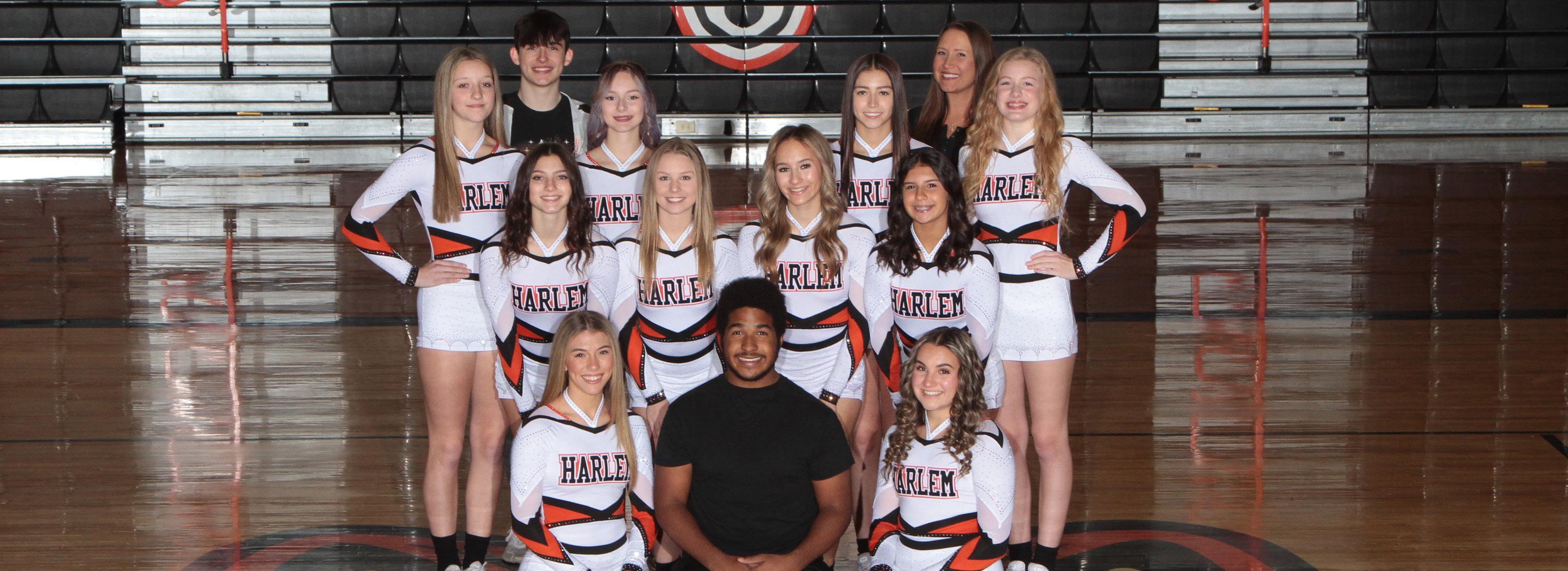This is Rebecca’s tenth year as the Head Varsity Cheer Coach at Harlem. She previously coached the freshman and JV Cheer teams. Rebecca is originally from Winnebago, IL, and currently lives in Winnebago with her husband and four fur “kids.” She earned her Bachelor of Arts Degree in English and Masters in Educational Pedagogy from Rockford University. During her tenure as the Head Varsity Cheer Coach, the Varsity Cheer team has had seven top-3 finishes in the NIC-10 conference, finishing as conference runner-up four times. The team has qualified for the IHSA state series five times, winning a Sectional title and making it to the State finals in 2019. This year’s team is excited to build on past successes and hopes to qualify for State again this year.