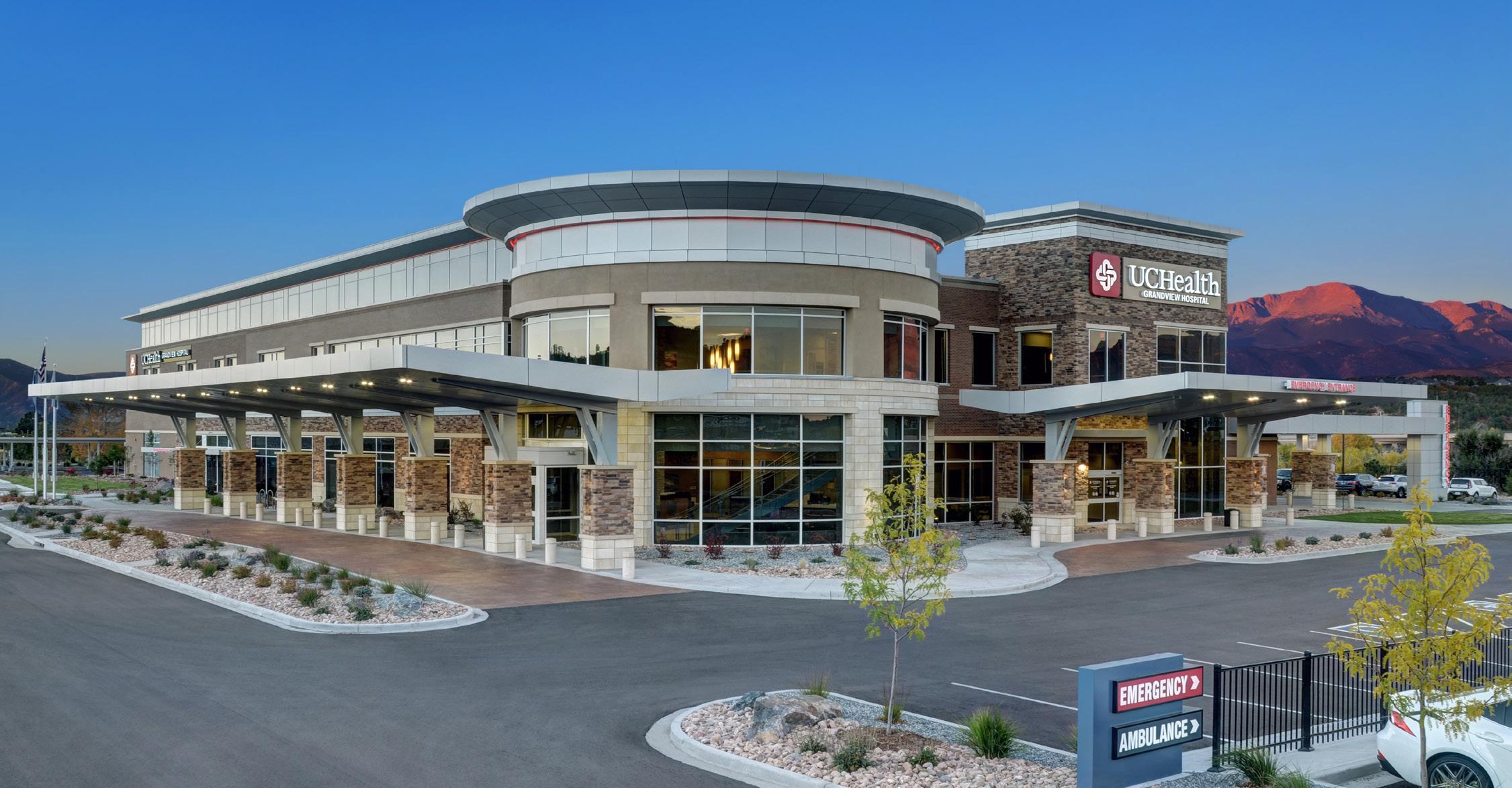 DBR provided mechanical, electrical, and plumbing design services for the 60,000-square-foot, 2 level hospital in Colorado Springs. The hospital consists of 24 beds, 3 operating rooms, 8 PACU stations, 6 emergency exam rooms, 2 treatment rooms, CT scan, and x-ray. The MEP systems included two 150-ton air cooled chillers and 6 custom air handling units. A 20-ton glycol chiller was provided to maintain low temperatures in the Operating Rooms while also maintaining the room relative humidity. The heating system consists of three 2000-MBH high efficiency condensing type gas fired heating water boilers and the associated pumps and distribution piping. The essential power system included a 1000-KW diesel engine emergency generator and the normal power service included a 2500-amp main service.