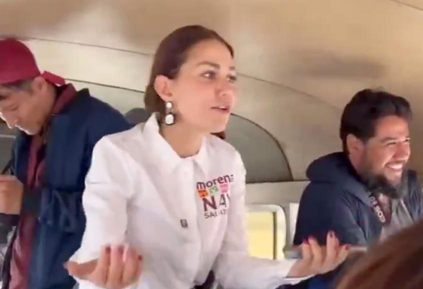 ‘Nay’ Salvatori parodió un asalto en el transporte público acompañada del candidato a la alcaldía de Morena en San Andrés Cholula, Víctor Correau. En el vídeo publicado en sus redes sociales, se observa como ‘Nay’ aplicó el clásico “cámara ya se la saben” abordo de una camioneta con sus simpatizantes.
