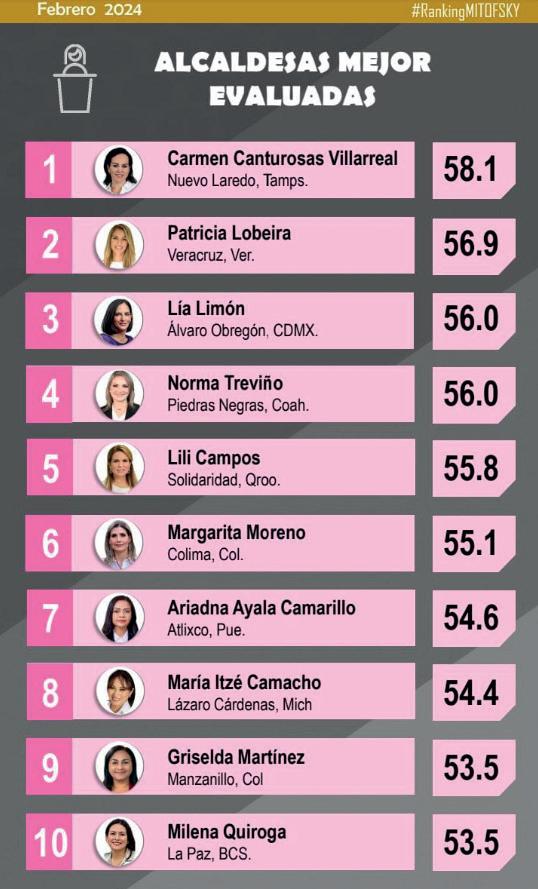 Se posicionó en el séptimo lugar dentro del rango de alcaldesas