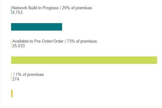 Limited progress has been made on the rollout of the NBP since the previous report as follows. Since the September figures, only 212 additional premises have been added to the available to order status. 30 premises on Inis Bó Fhinne are being added into the National Broadband Plan and NBI are currently looking at backhaul options to the mainland infrastructure.