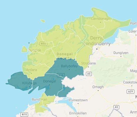 Fibre services are available to order in 17 of the Deployment Areas in the County. That covers 73% of the total Intervention Area premises in Donegal. Network build continues in 4 Deployment Areas. There are no Deployments Areas left to be surveyed.