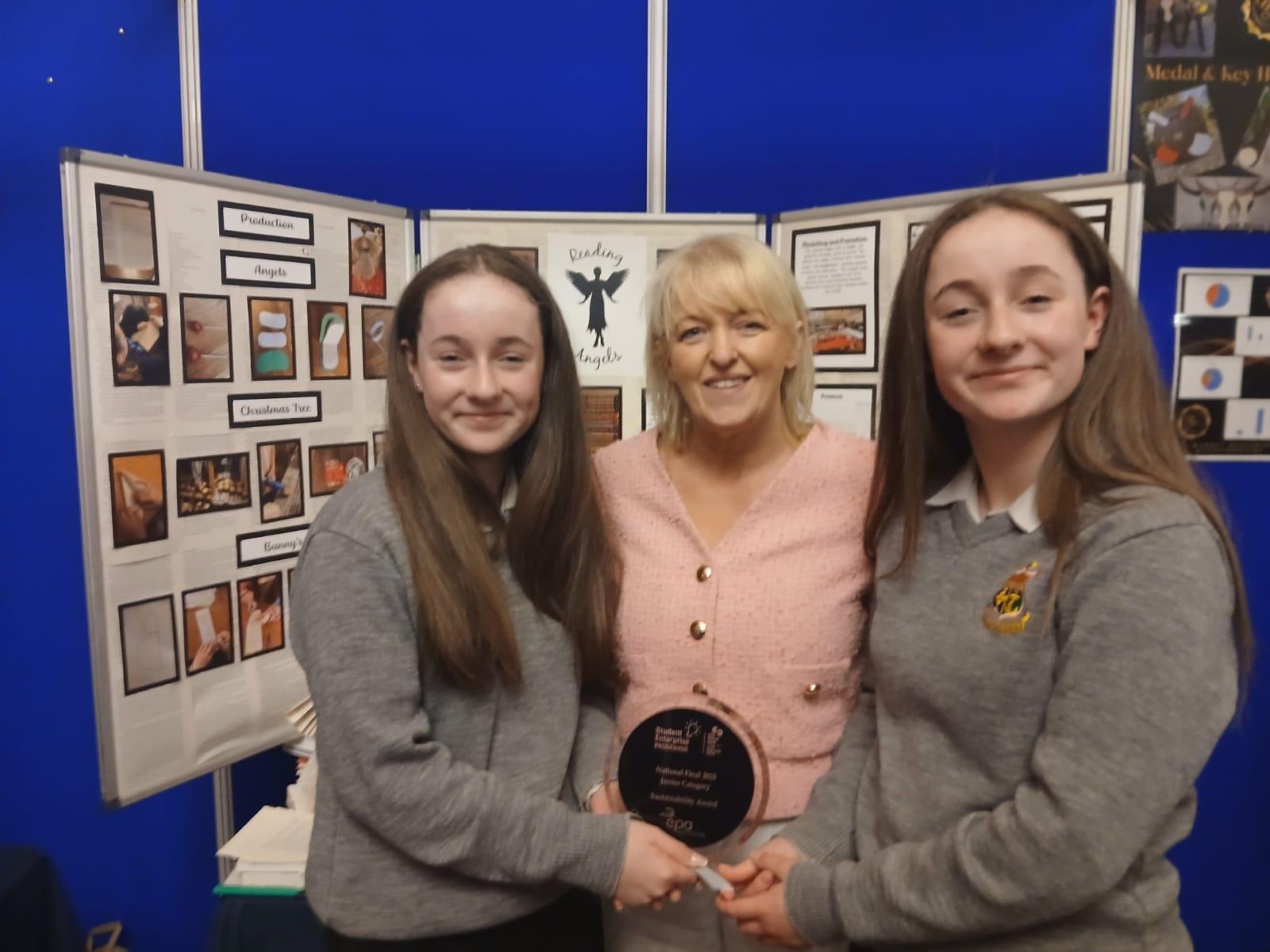Cara Coulter and Sophie Coulter from St. Columba’s College, Stranorlar, who won the Sustainability Award the National Final of the Student Enterprise Programme 2025 with their business Reading Angels.