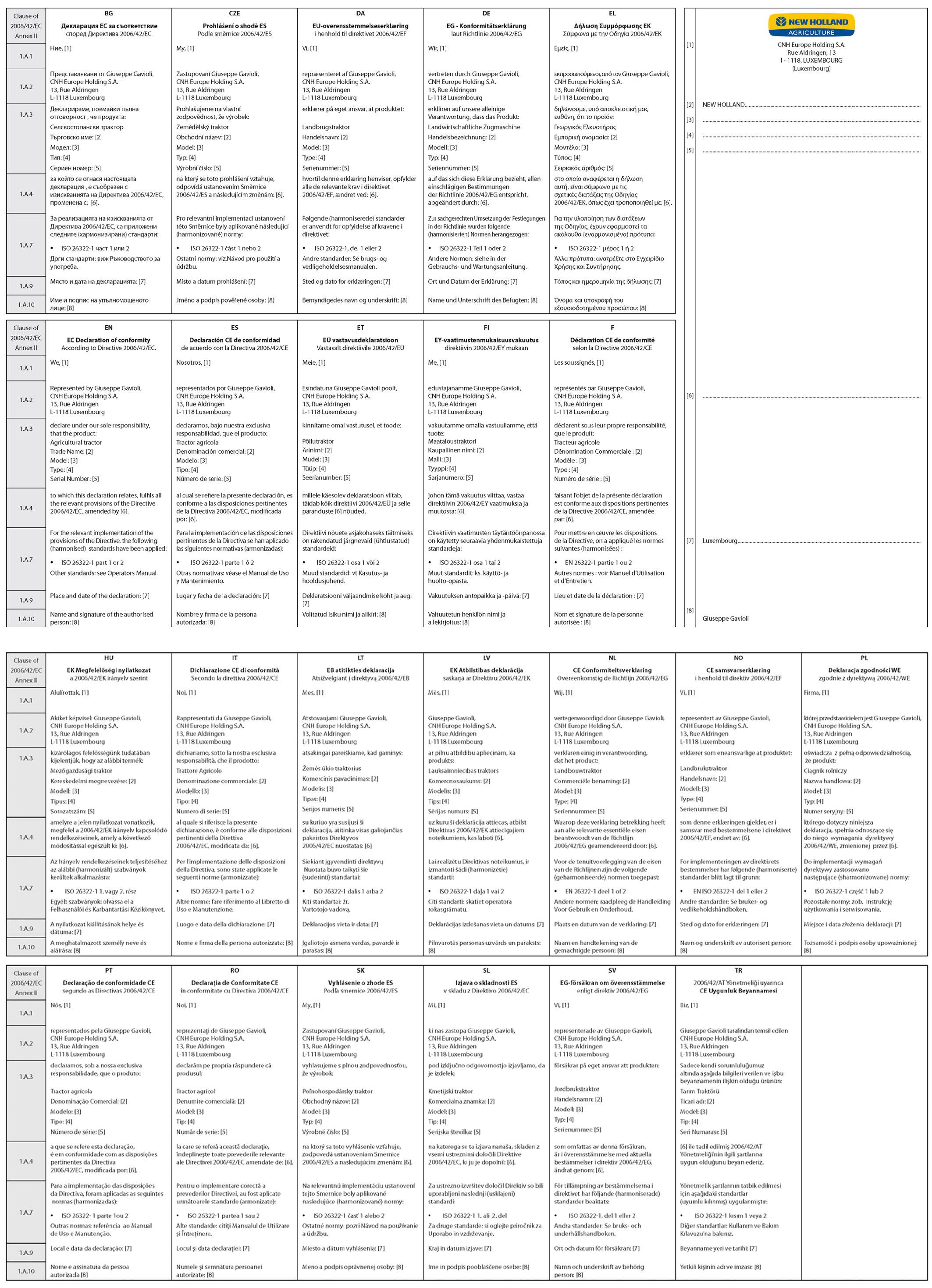 • Ensure that each piece of non-New Holland equipment fitted to the tractor bears the CE mark.