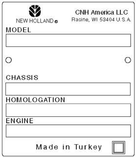 TheProductIdentificationNumberplateprovides importantinformationontractorandtowed equipmentweightcombinations.Thisplatecanbe foundontheright--handsideofthecabexteriortrim panel,belowtherearwindow.