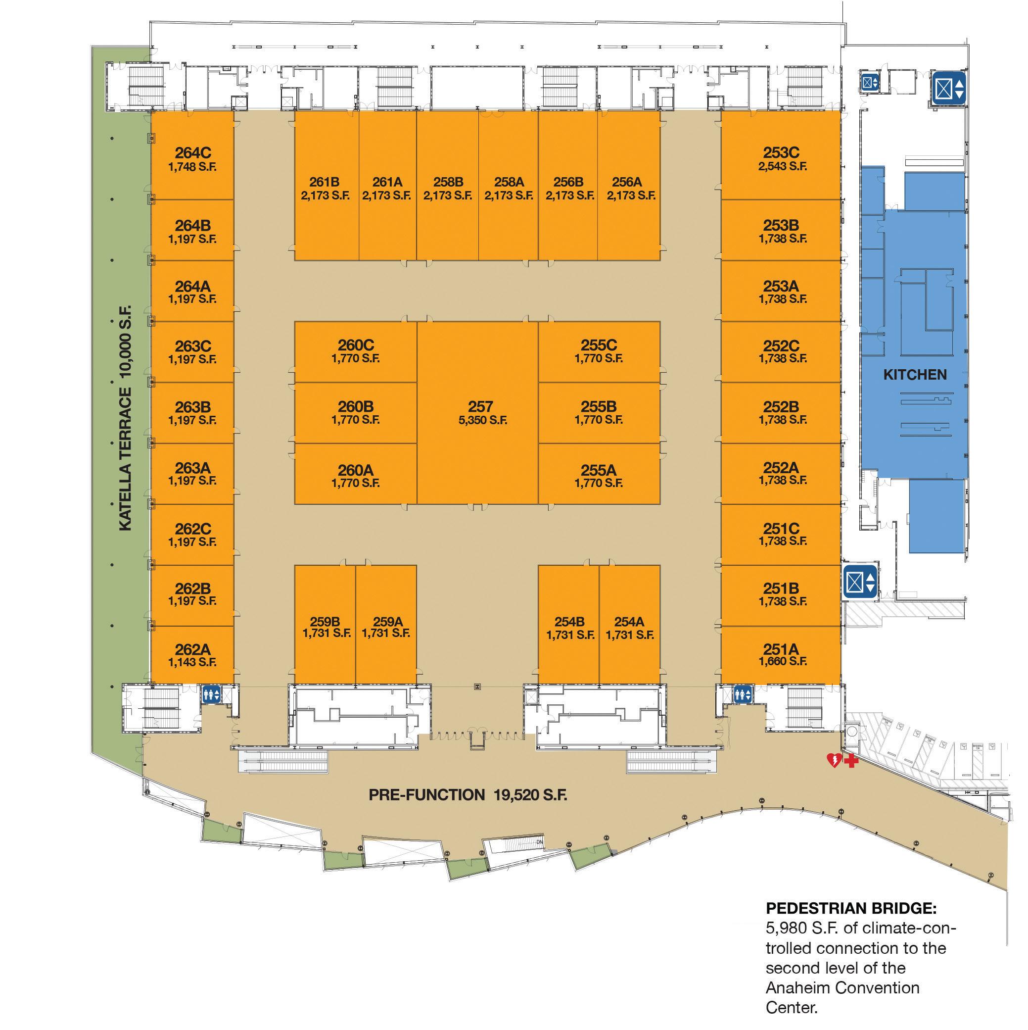 Pre-function lobby space: 222,192 square feet