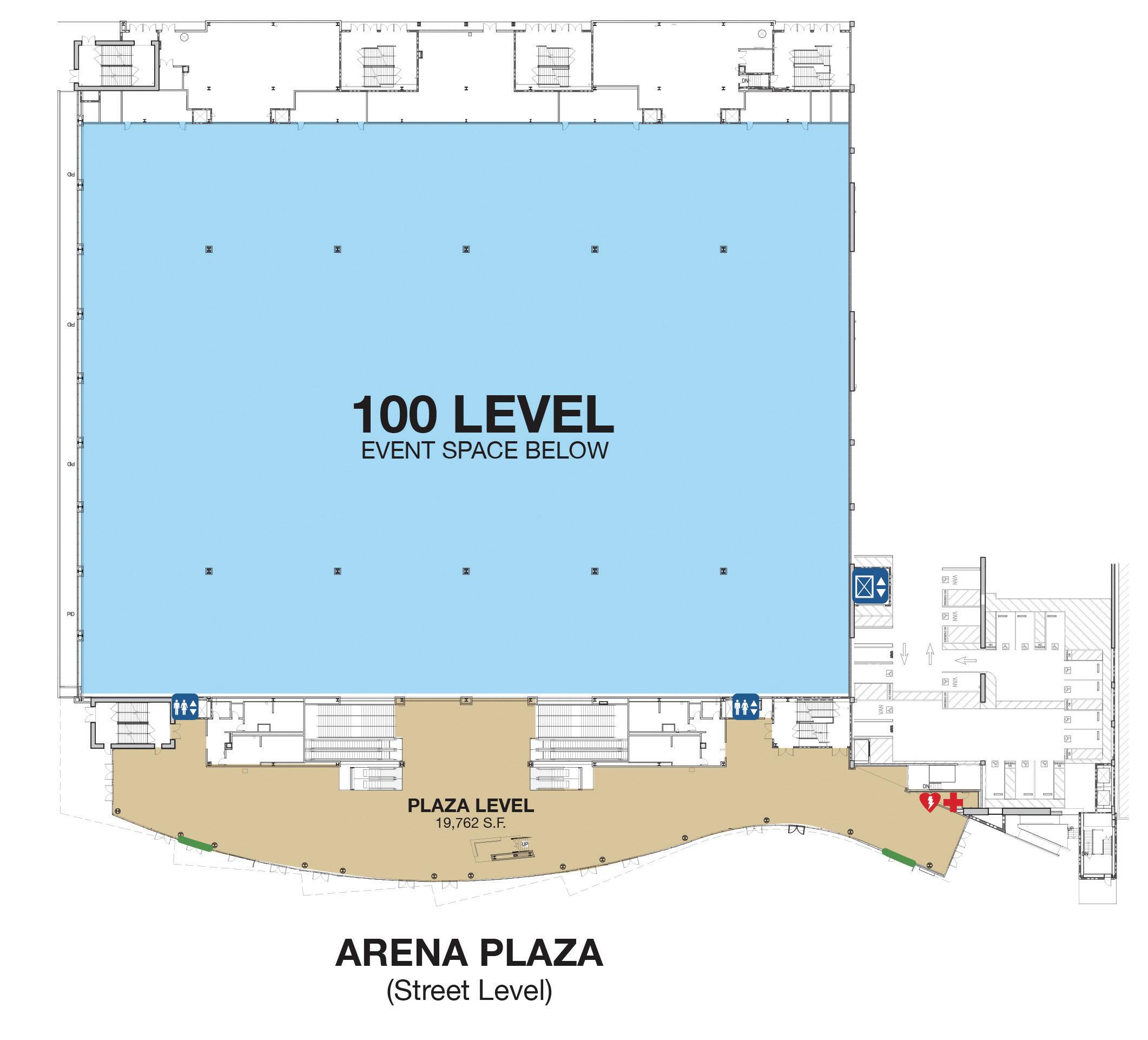 ADA seating is located on the Arena floor as there are no elevators located in the Arena.
