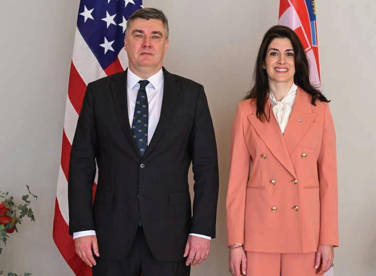 The President of the Republic of Croatia, Zoran Milanović, received the credentials of he President of the Republic of Croatia Zoran Milanović received the credentials from the Ambassador of the United States of America. H. E. Nathalie Rayes. The Ambassador of the United States of America was accompanied by her spouse Tarek Samad, sons Julian Samad and Alexander Samad, Deputy Chief of Mission Mark Fleming, Defense Attaché Colonel Scott McLearn, and the Adviser for Press and Culture Danielle Harms. President Milanović was accompanied by the Adviser to the President of the Republic for Foreign and European Policy Neven Pelicarić, Director-General of the Directorate-General for Political Affairs in the Ministry of Foreign and European Affairs Petar Mihatov, and the Secretary of the Cabinet for Foreign and European Policy in the Office of the President Ivan Mutavdžić.