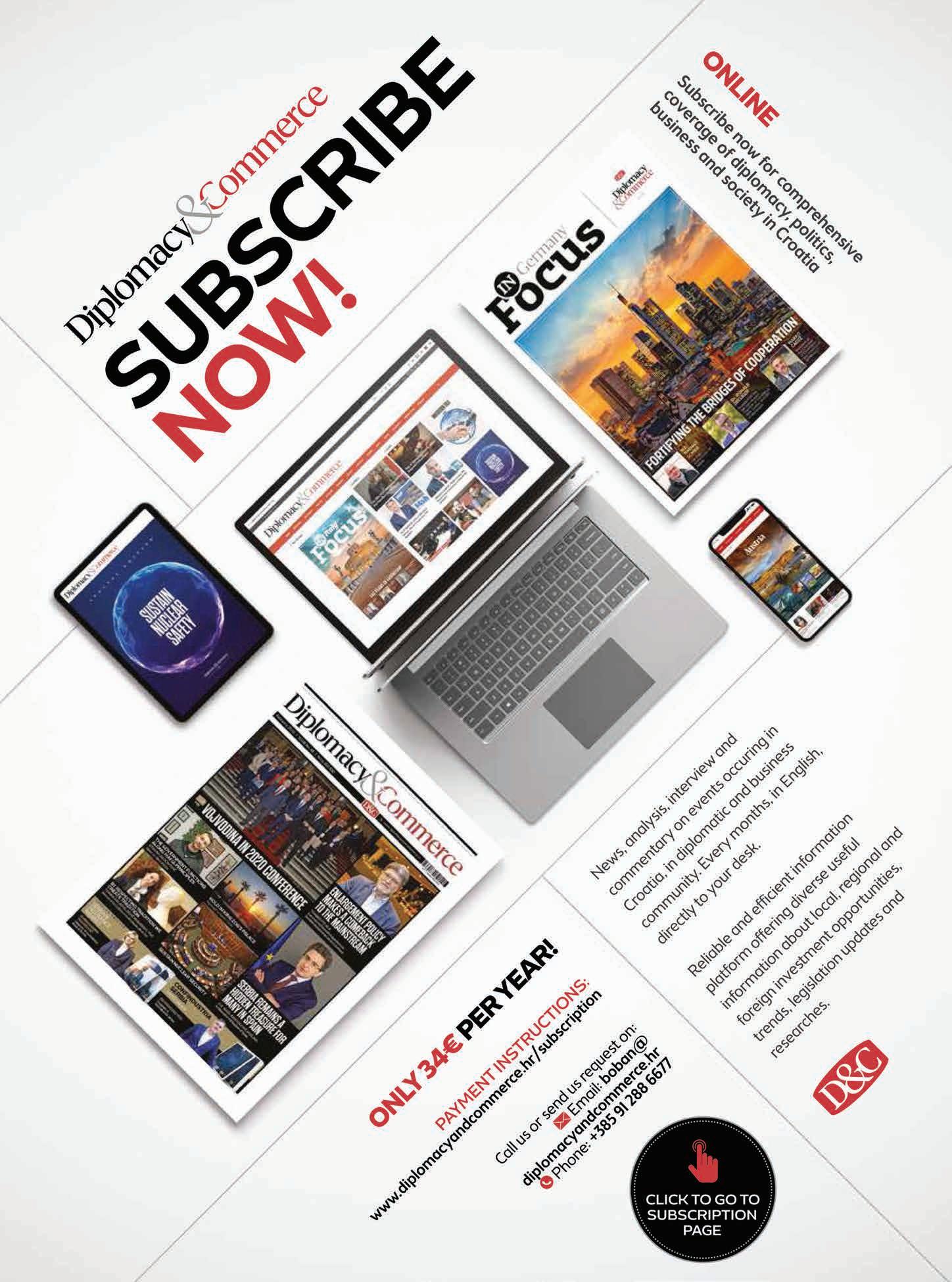 The Diplomacy&Commerce team is pleased to present to you the new edition of the magazine, one that we have worked hard on. This is the seventh year of the magazine in Croatia, and in addition to the quality you are used to and rich content, the magazine will publish 4 issues in 2024. Our plan is to prepare two issues before the summer break and two after the summer. This makes our content even richer and more concise.