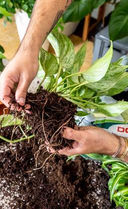 Thomas: "Als de wortels onderaan uit de pot komen gekropen, is het hoog tijd om te verplanten. Wanneer ik een miniplantje koop, verpot ik het meteen na aankoop, en na een jaar opnieuw: zulke piepjonge plantjes groeien hard, en hun wortels hebben veel ruimte nodig om zich te ontwikkelen. Jonge planten verpot ik elke twee jaar, volwassen exemplaren hebben genoeg aan een verpotbeurt elke drie jaar. Je kunt bij grote, volwassen planten gerust de oude pot hergebruiken, maar geef jongere planten die nog volop groeien altijd een nieuwe pot die ongeveer 20% groter is dan de vorige. Verpot in de lente of in de zomer, zelf vind ik maart een perfecte maand. Haal je plant uit de pot, en verwijder de buitenste laag potgrond. Strooi een laag verse potgrond in de pot, maak voorzichtig een kuiltje in de losse potgrond en zet je plant op dezelfde hoogte als voorheen. Druk de potgrond goed tegen de wortels, en vul bij. Duw tussendoor de potgrond aan, zo blijft je plant mooi rechtop staan. Kies altijd kwaliteitspotgrond op maat van je plant! Ik gebruik voor de meeste kamerplanten zelf DCM Kwaliteitspotgrond Kamerplanten, die is biologisch, en bevat voeding voor 150 dagen. Heb je echter planten die een iets andere bodem nodig hebben, zoals een cactus, vetplant, orchidee of palm? Ga dan voor een potgrond op maat van deze soorten, je vindt ze ook terug in het DCM gamma."