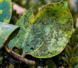 "Controleer regelmatig op bladluizen. Wolluizen, die er uitzien als kleine dotjes witte wol, en dop- of schildluizen, harde bruingele knobbeltjes op de bladeren, komen het vaakst voor."