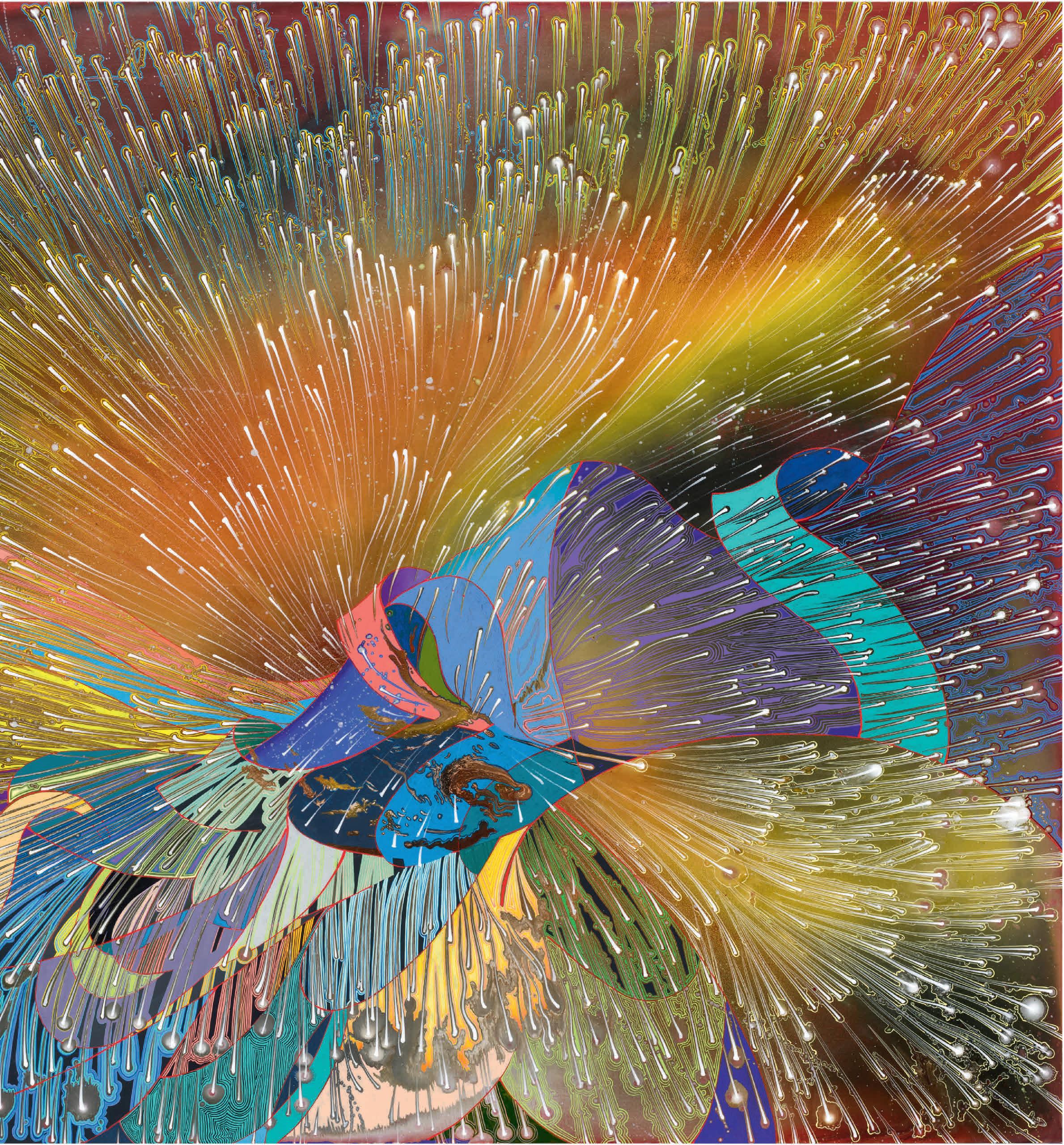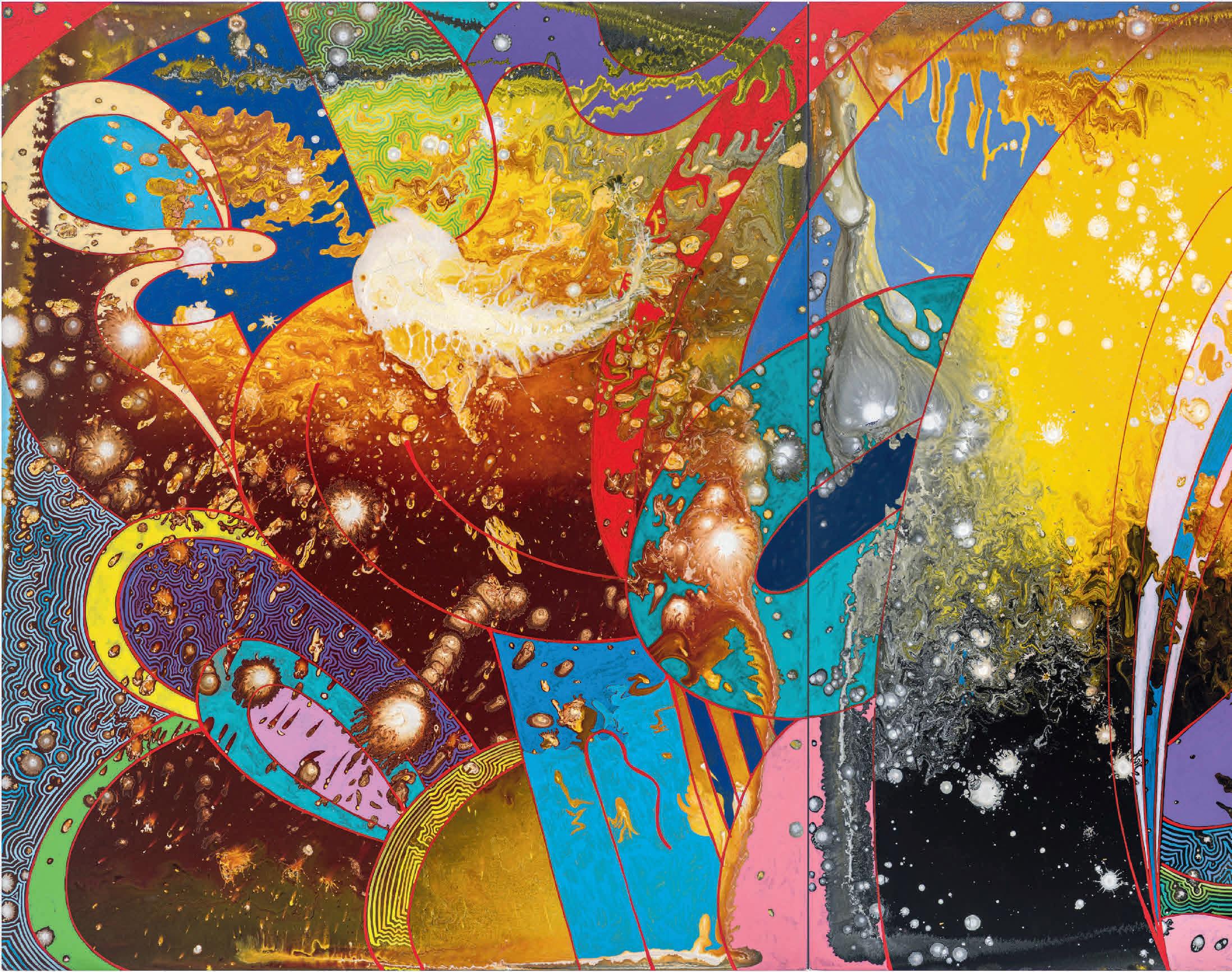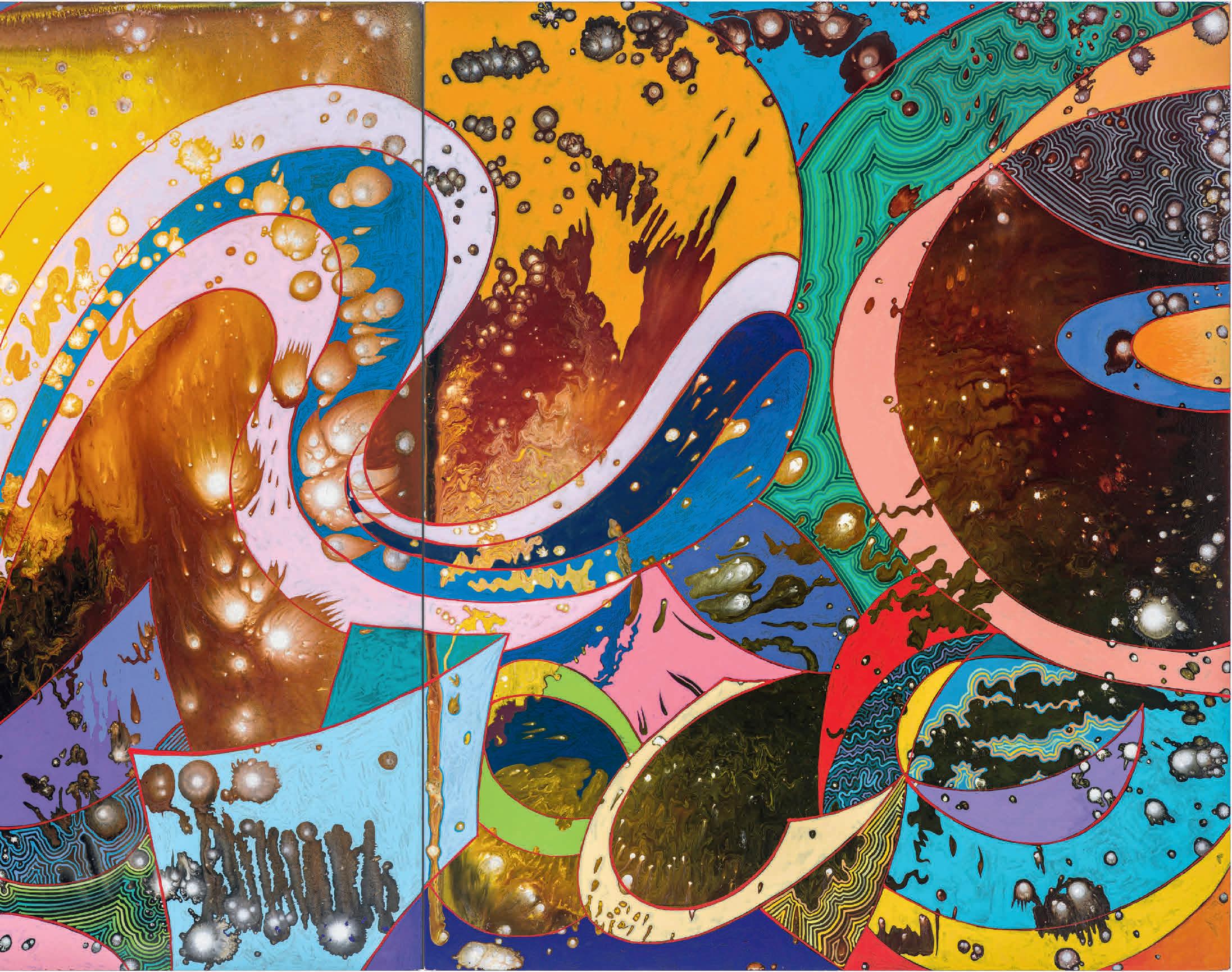 What a beautifully written question. I want it to be my answer. Symbols crashing, gongs ringing! My recent, more colorful paintings do have a kind of dancing chaos going on, things mashing up against each other, like in a mosh pit, lots of clanging and jumping and collapsing. I wish I knew where they were going.