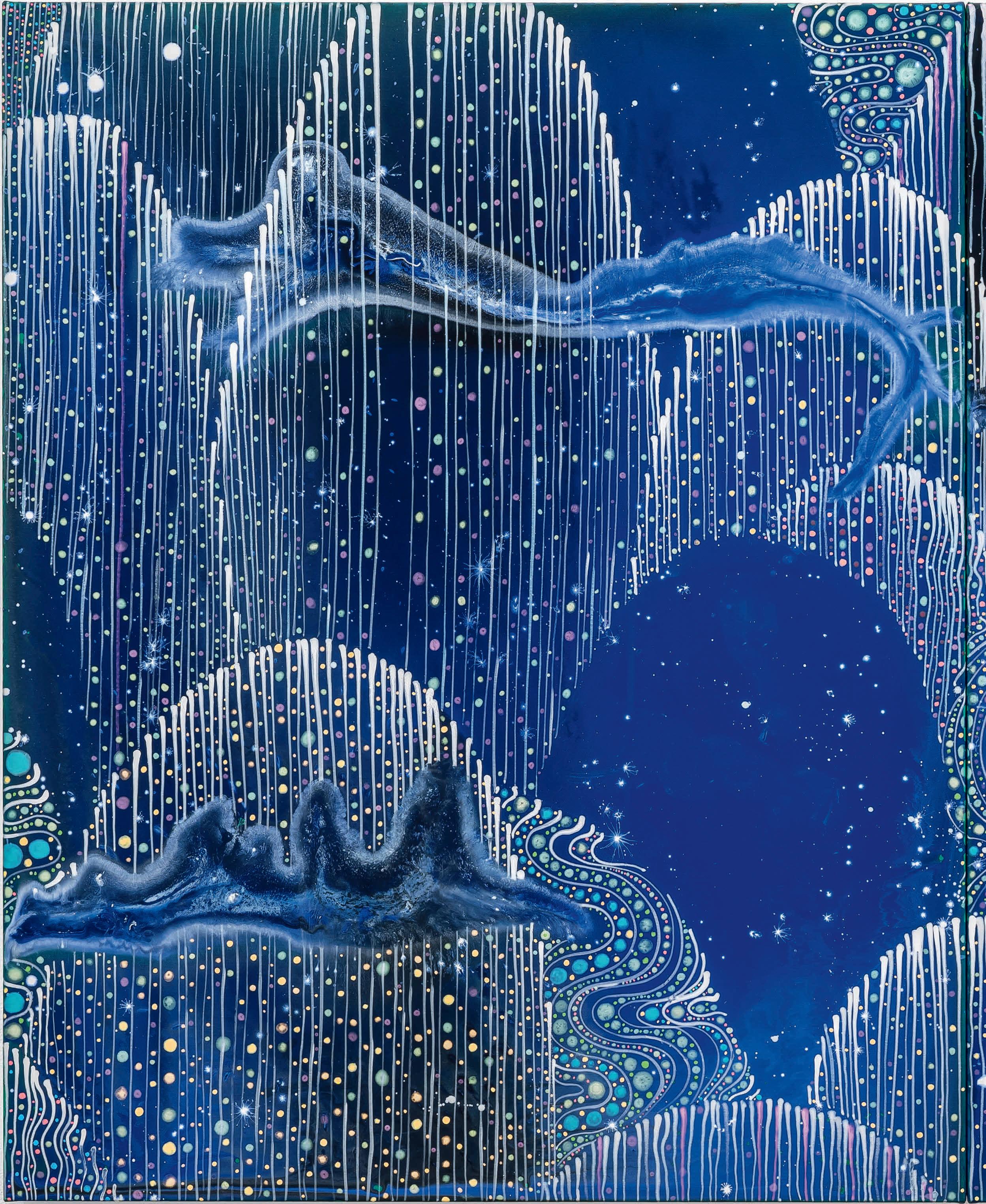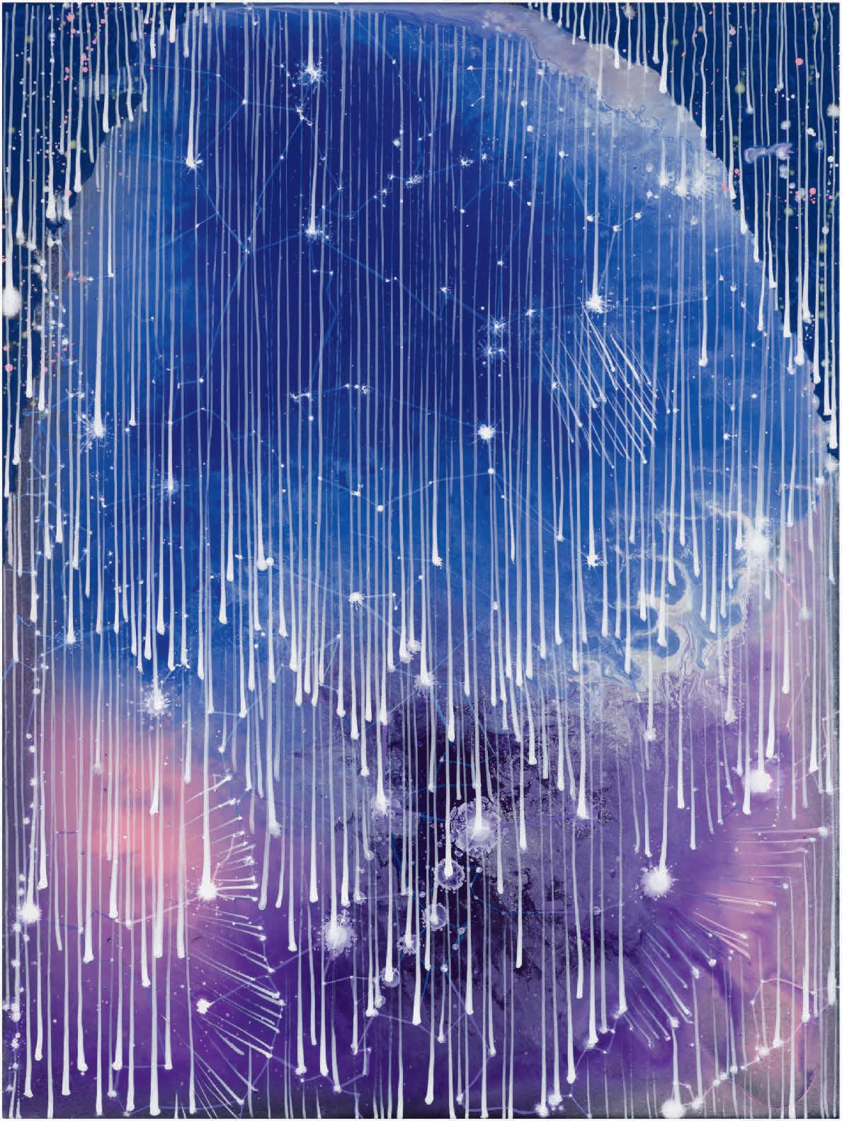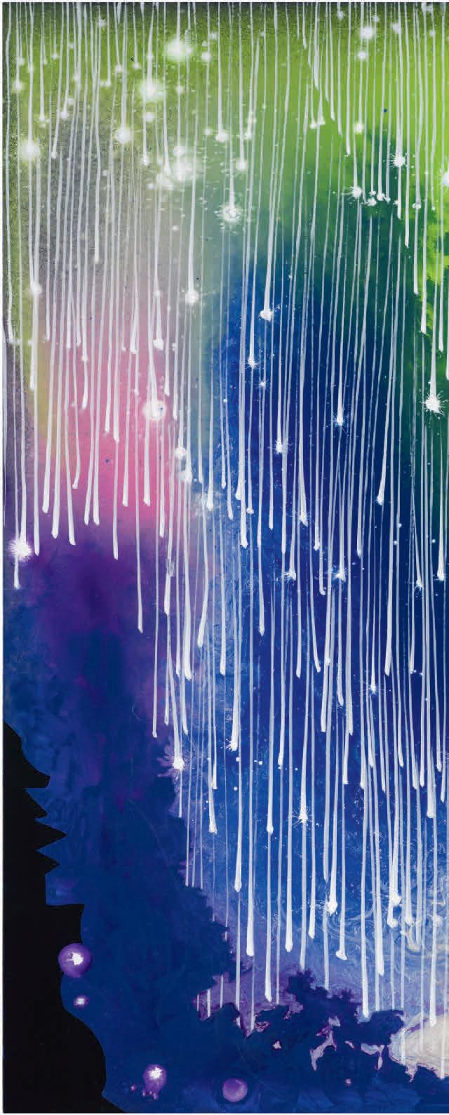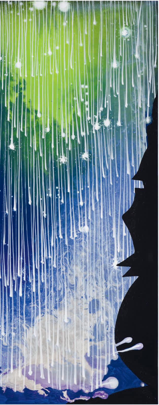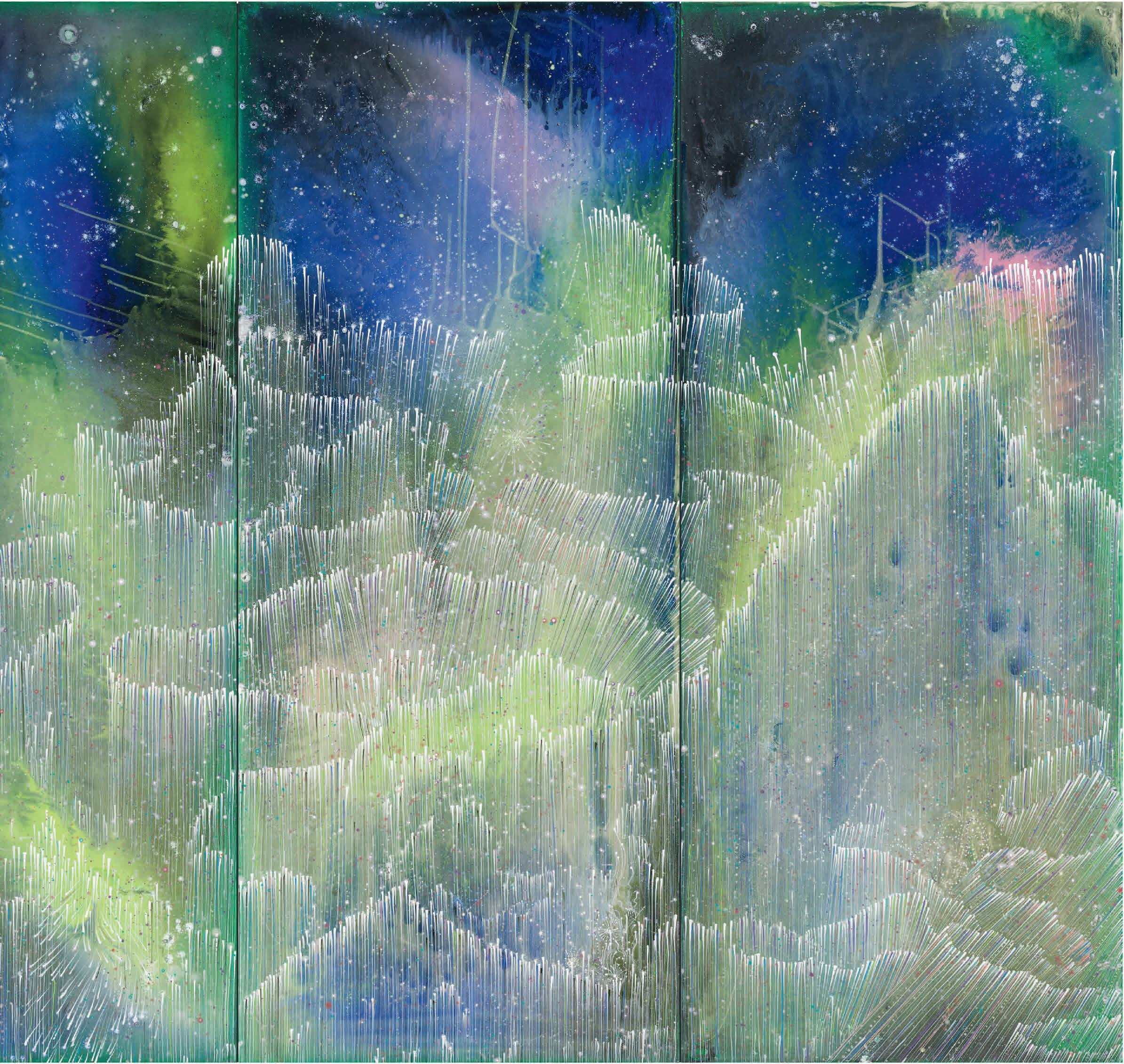 In the studio were you thinking about “The Auroras of Autumn,” Wallace Stevens’s long poem about the Northern Lights as “a symbol of imagination and the transition from life to winter.” (These lines in particular, “...how the north is always enlarging.../ With its frigid brilliances, its blue-red sweeps/ And gusts of great enkindlings, its polar green,/ The color of ice and fire and solitude.”)