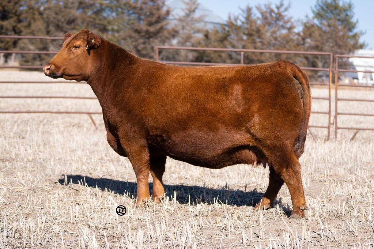 7015M is a super stout, nice balanced, deep ribbed Red Angus bull that brings a lot of extra’s to the table. 7015M ranks in the top 10% of the breed for growth and carcass traits. El Dorado uniquely combines pounds, performance, and quality carcass traits, in an attractive package. Dam has been a top producer that maintains a 104 MPPA and has raised sons working in purebred herds. El Dorado’s pedigree is an outcross for many breeders looking to add growth and carcass merit to their herd. Retaining half semen interest.