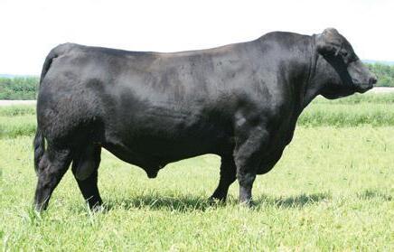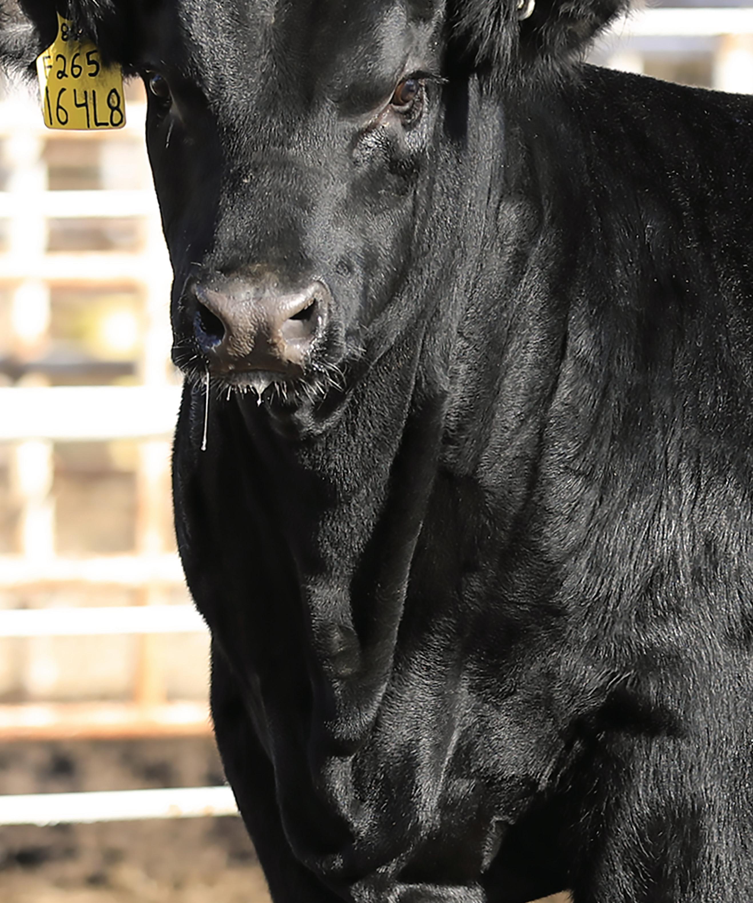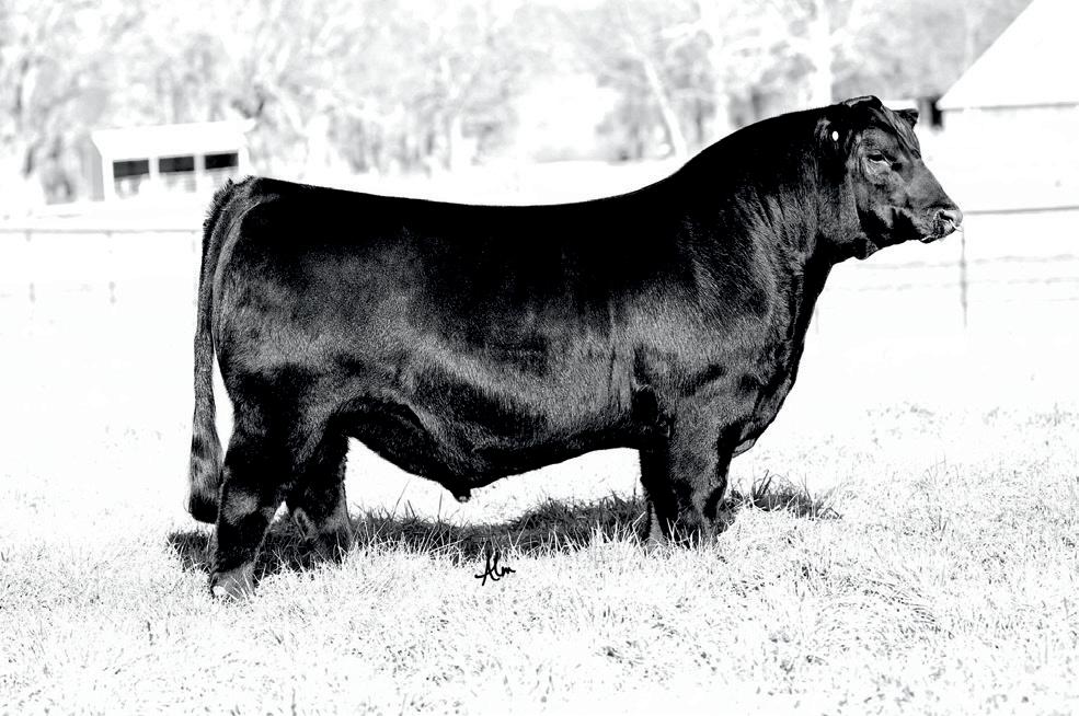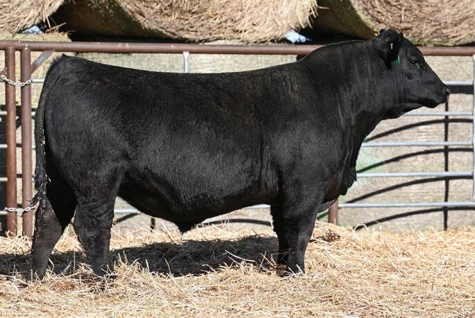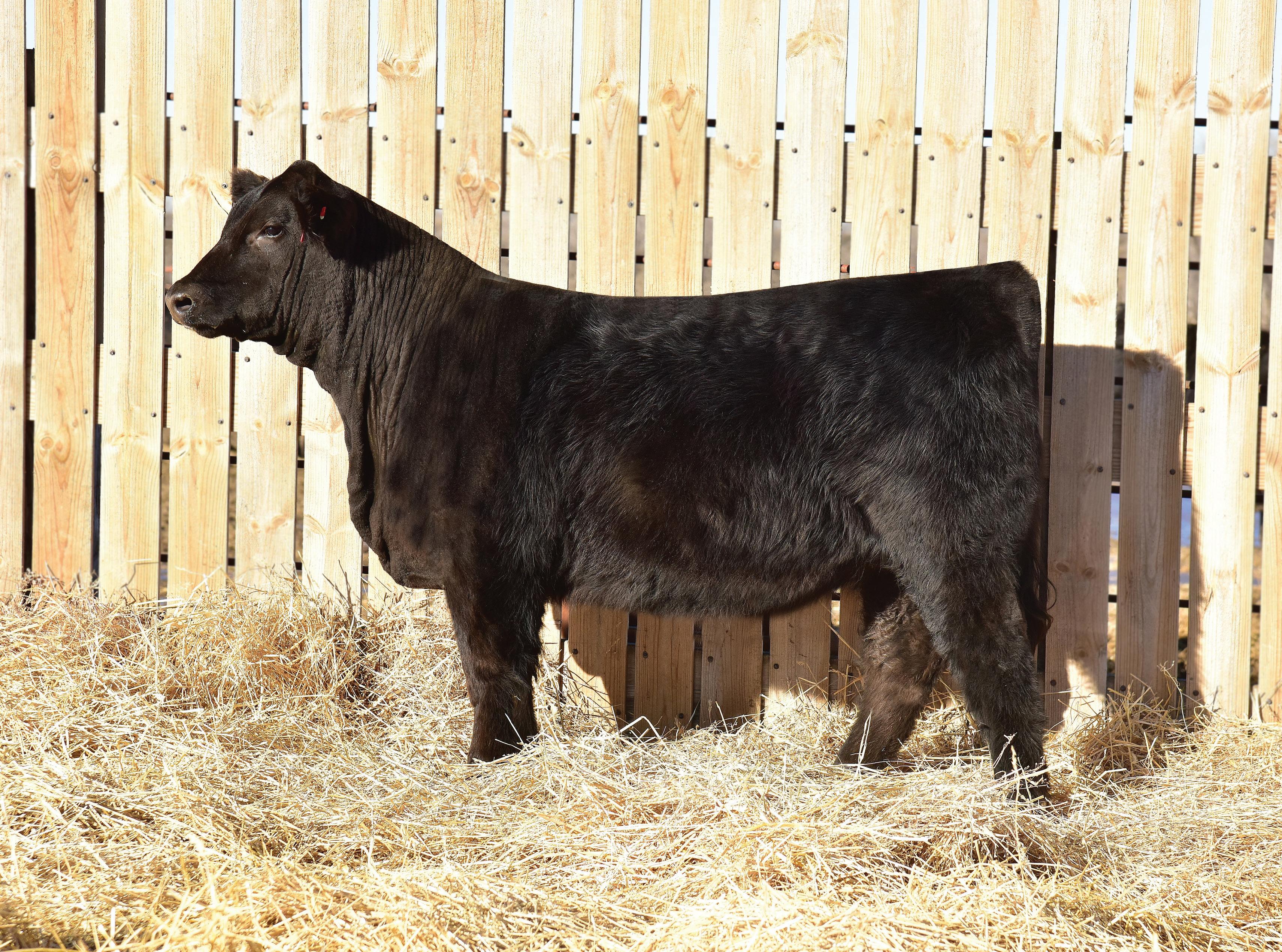 Black, Homozygous Polled Purebred BW: 85 lbs. 205 Day Weight: 823 lbs. Actual WW: 1,010 lbs. 365 Day Weight: 1,284 lbs. Yearling Scrotal: 40.6 cm.