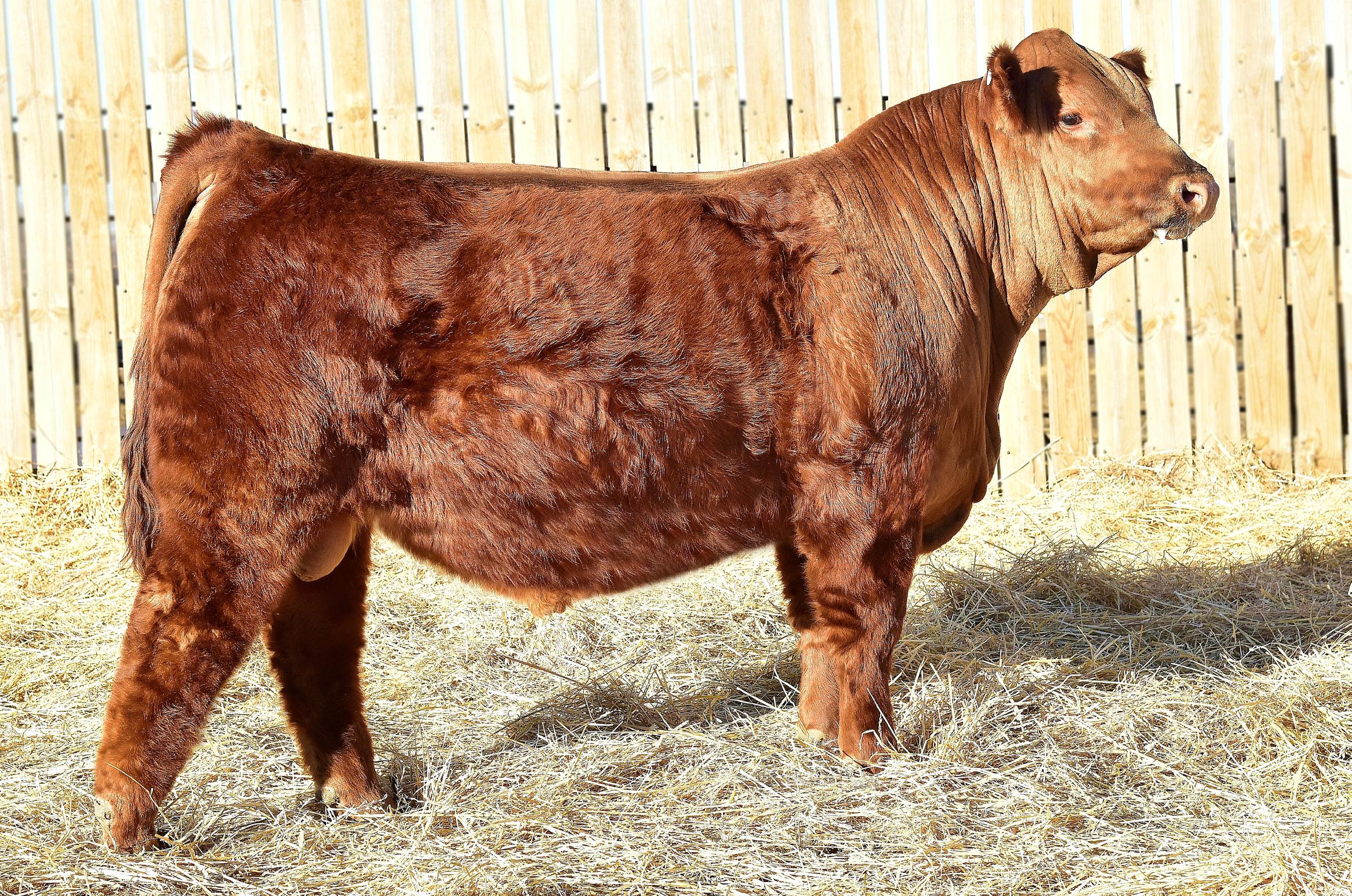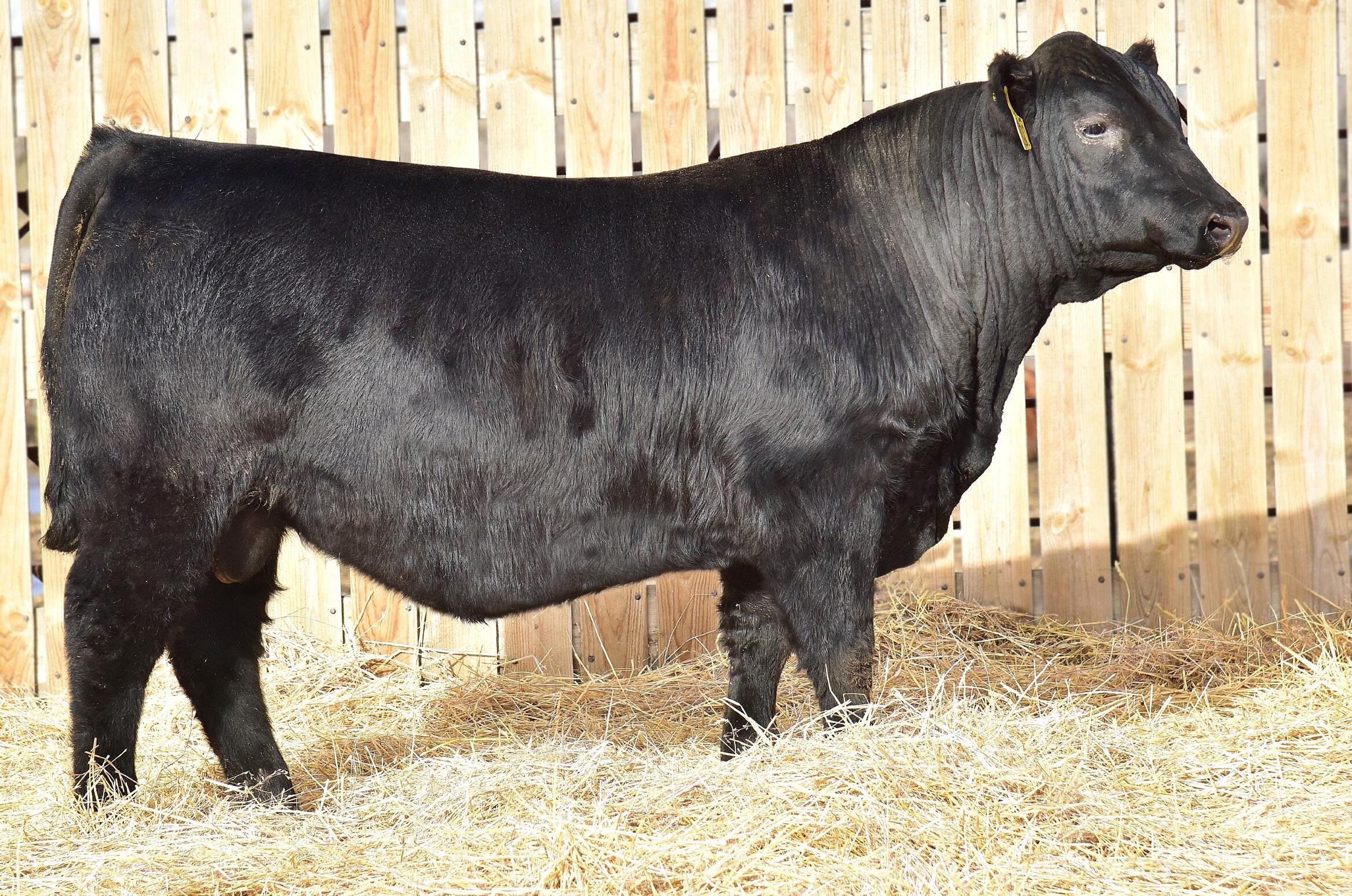 4723M is a long-bodied, clean-fronted female, with an attractive build. Her dam is a moderate-framed powerhouse of a female, and her maternal brother sells as Lot 33. Longevity runs deep within this young cow’s pedigree. Her EPDs rank in the top 4% for DMI. Expected calving date: 5/5/2026; safe to FAR Bandolier 421.