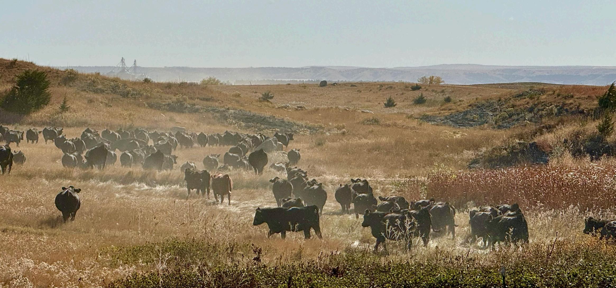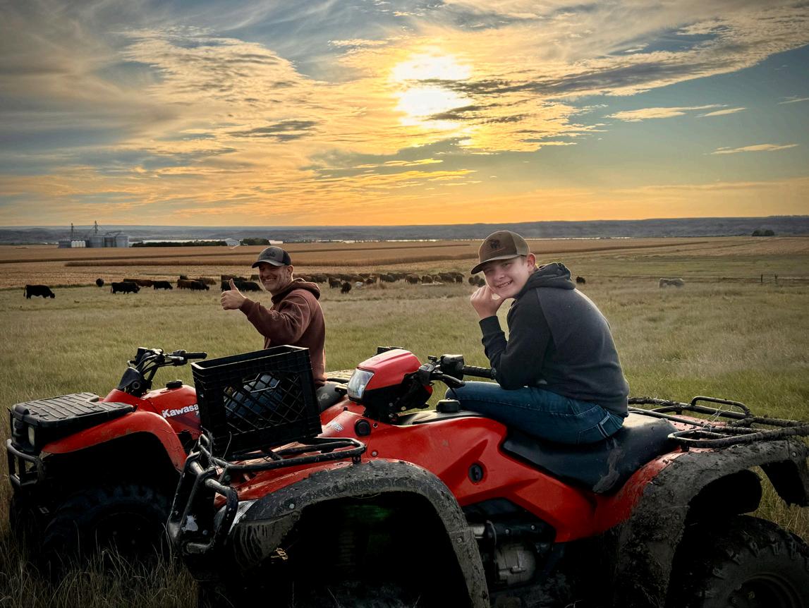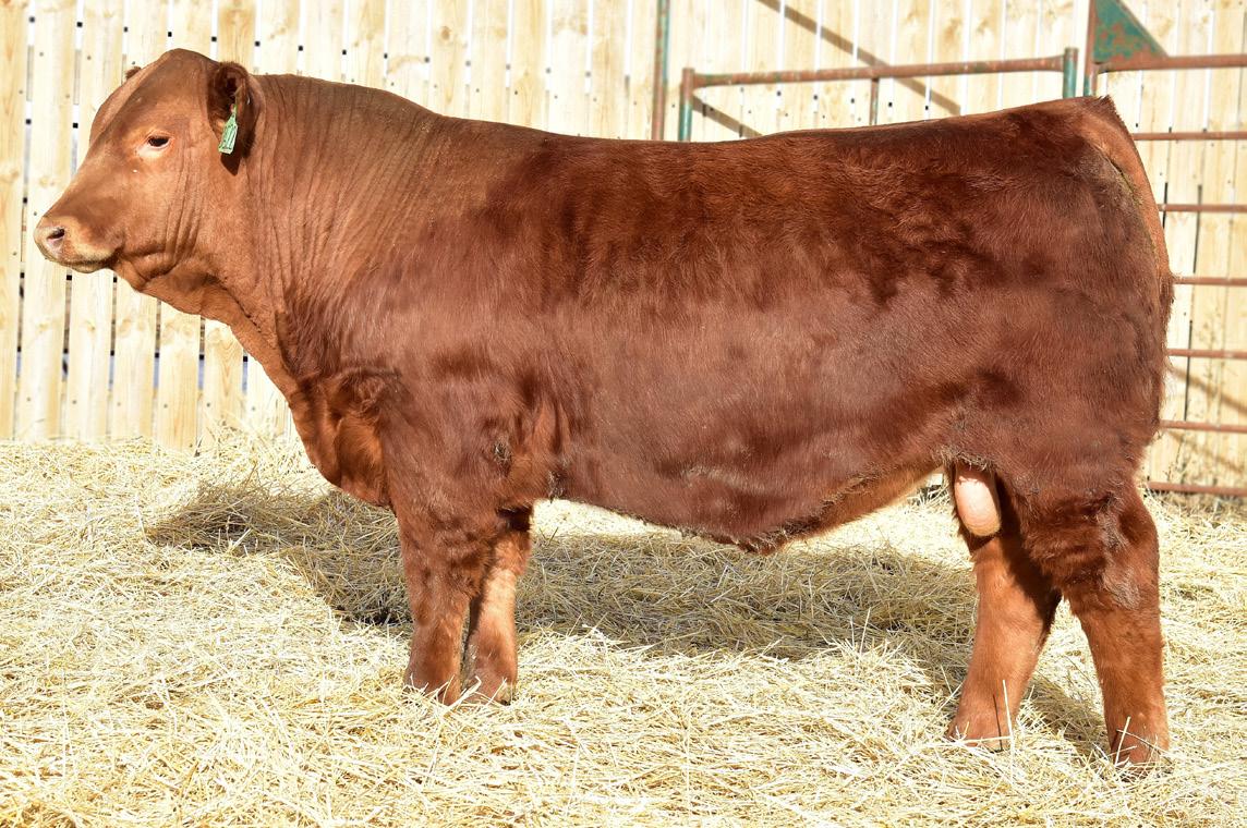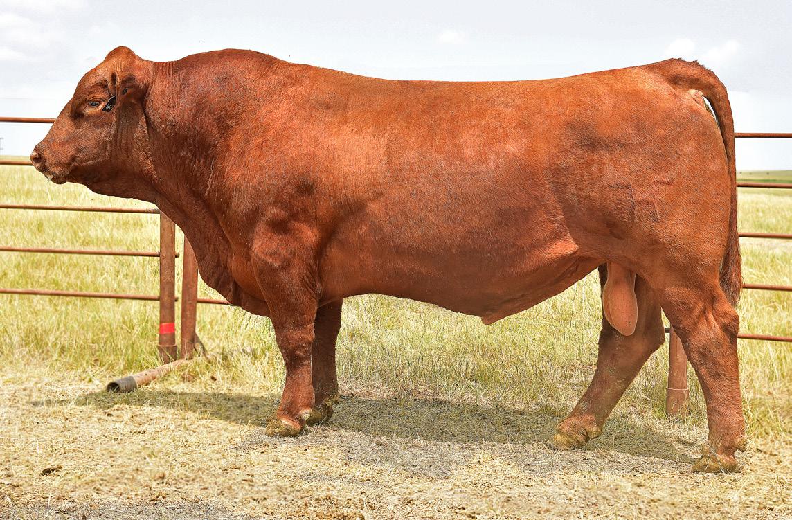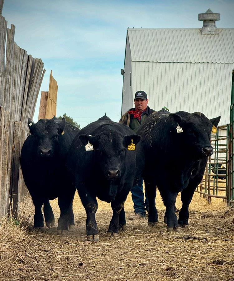 This year’s sale offering has exceeded the goals we have set for our program. The bulls are uniform in type regardless of breed percentage—thick, long-spined, easy fleshing, and exceptional on their feet and legs. The 2025 calf crop was weaned in mid-August due to drier pasture conditions and has excelled on our feed program. Bulls are developed on a high-fiber, roughagebased ration with ample space to exercise and structural longevity in mind. Our natural calves were raised on rugged pastures without supplementation and returned with excellent weaning weights.