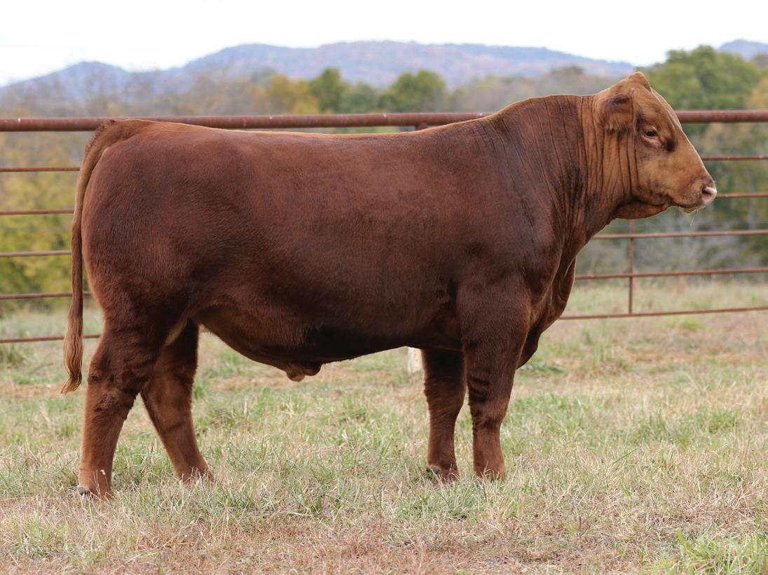 Good looking, long bodied high percent bull that packs a powerful punch and is big time performance oriented. If you need to add pounds to a set of mature cows with a shot of extra size and scale this, is you bull. Top 10% WW and 25% YW.