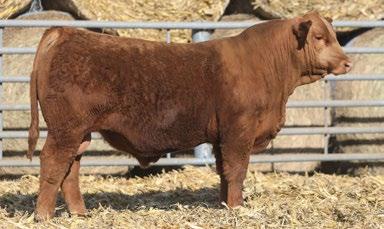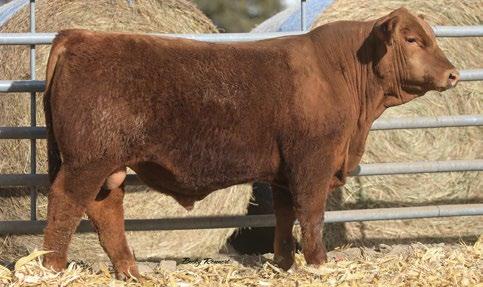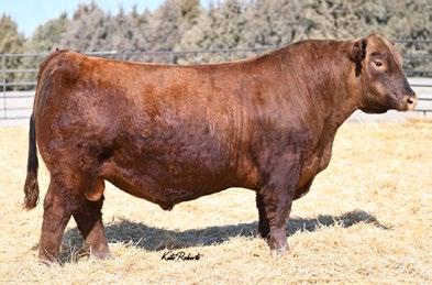 Herd Bull Alert!!!! This red Powerhouse son will definitely be turning heads on sale day. He is as stout as they come with tons of base width, dimension, and depth of body all while maintaining great eye appeal. He is moderate and sound with a pedigree stacked with great sires and a cow family that traces back to the Pelton Red Angus program. Growth, Carcass and Maternal all in one package. Be sure to find him on Sale Day.