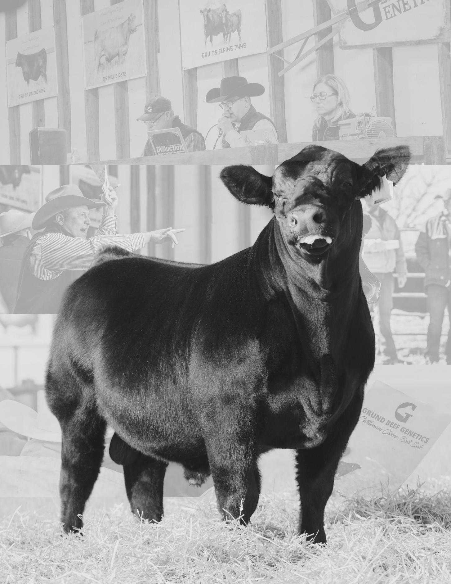 Our genetics continue to make an impact beyond our program. In 2025, Just N Time was recognized as the top A.I. sire for Balancer cattle. We are fortunate to have family members working throughout the beef industry, with connections in animal health, specialty feeder cattle programs, and risk management tools. We are always willing to help customers navigate these opportunities. We will again offer volume discounts on bulls—details are outlined in the catalog—as well as our sight-unseen purchase program. All bulls will be videoed and available for viewing at www.grundbeefgenetics.com and www. dvauction.com.