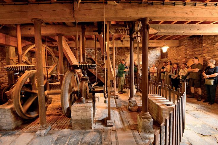 Op de 2e en 4e zaterdag van de maand kunnen bezoekers mee op een exclusieve rondleiding bij de industriële Frankenhofmolen bij Holset. Wel aanmelden! Foto: Het Limburgs Landschap, Henk Heijligers.