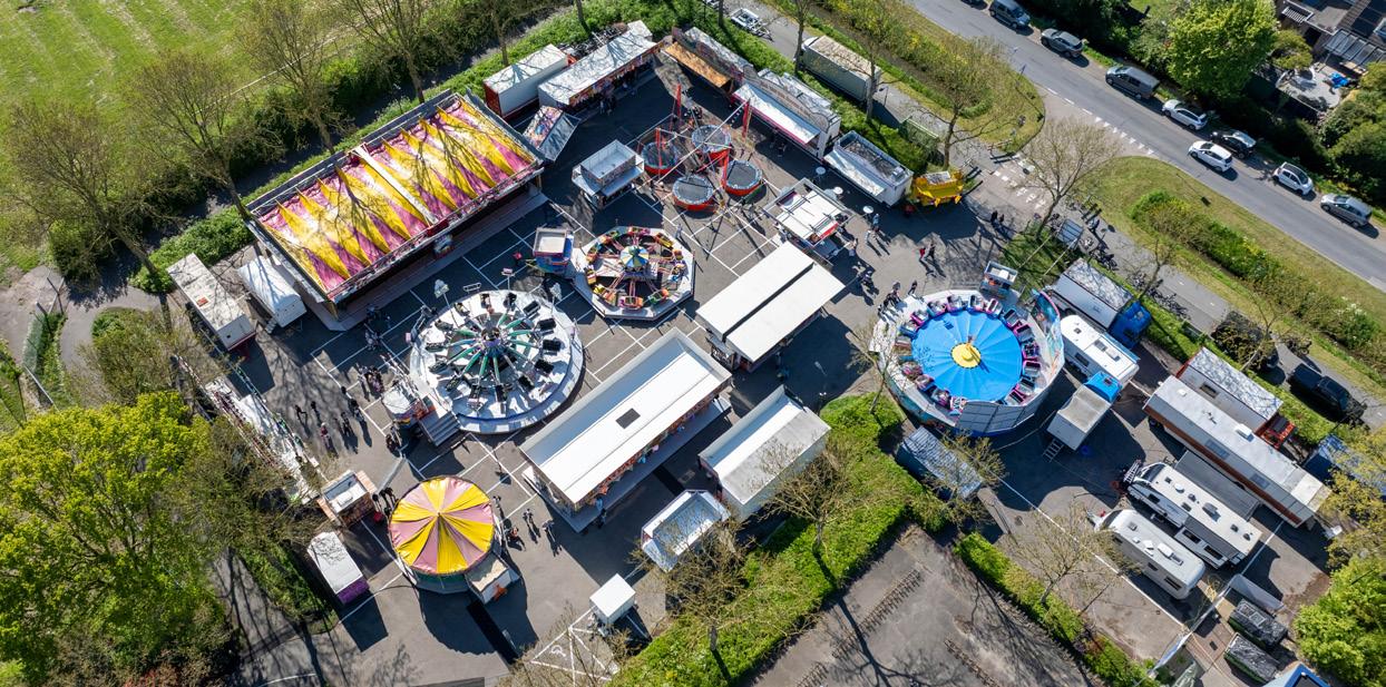 De Mijdrechtse Kermis is weer dagelijks geopend! Op donderdag en vrijdag van 13.30 tot 23 uur, op zaterdag van 11 tot 24 uur, zondag van 13.30 tot 23 uur en maandag 27 april (Koningsdag) van 13.30 uur tot 23 uur. Op zondag is er van 13.30 tot 14.30 een 'prikkelarm' uurtje zonder harde muziek en knipperende lichten, speciaal voor wie gevoelig is voor prikkels. Op zaterdag 25 april vindt het Koningsavond Penaltytoernooi plaats bij SV Argon (inschrijven 18 uur, start toernooi 19 uur). Om 20.45 uur verzamelen jong en oud zich rondom het carillon op het Raadhuisplein voor de Lampionnenoptocht. Rond 21.00 uur worden de lichtjes aangestoken, start de tocht en schalt de muziek door de straten van Mijdrecht. En om 22 uur wordt Koningsdag 2026 officieel geopend door de burgemeester met aansluitend een spectaculaire vuurwerkshow op veld 5/6 van SV Argon. In Wilnis is er op zaterdag 25 april ook penaltyschieten. Kijk voor alle Koningsdagactiviteiten in de speciale Oranjekrant die vorige week bij deze krant was gevoegd. Deze krant is ook online te bekijken op www.degroenevenen.nl foto luchtopname nl