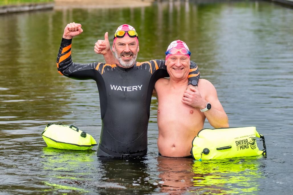 ▲ Remko Geursen (links) samen met zijn 58-jarige zwembuddie Dirk-Jan Aldewereld, met wie hij samen de 22 km lange tocht gaat doen.